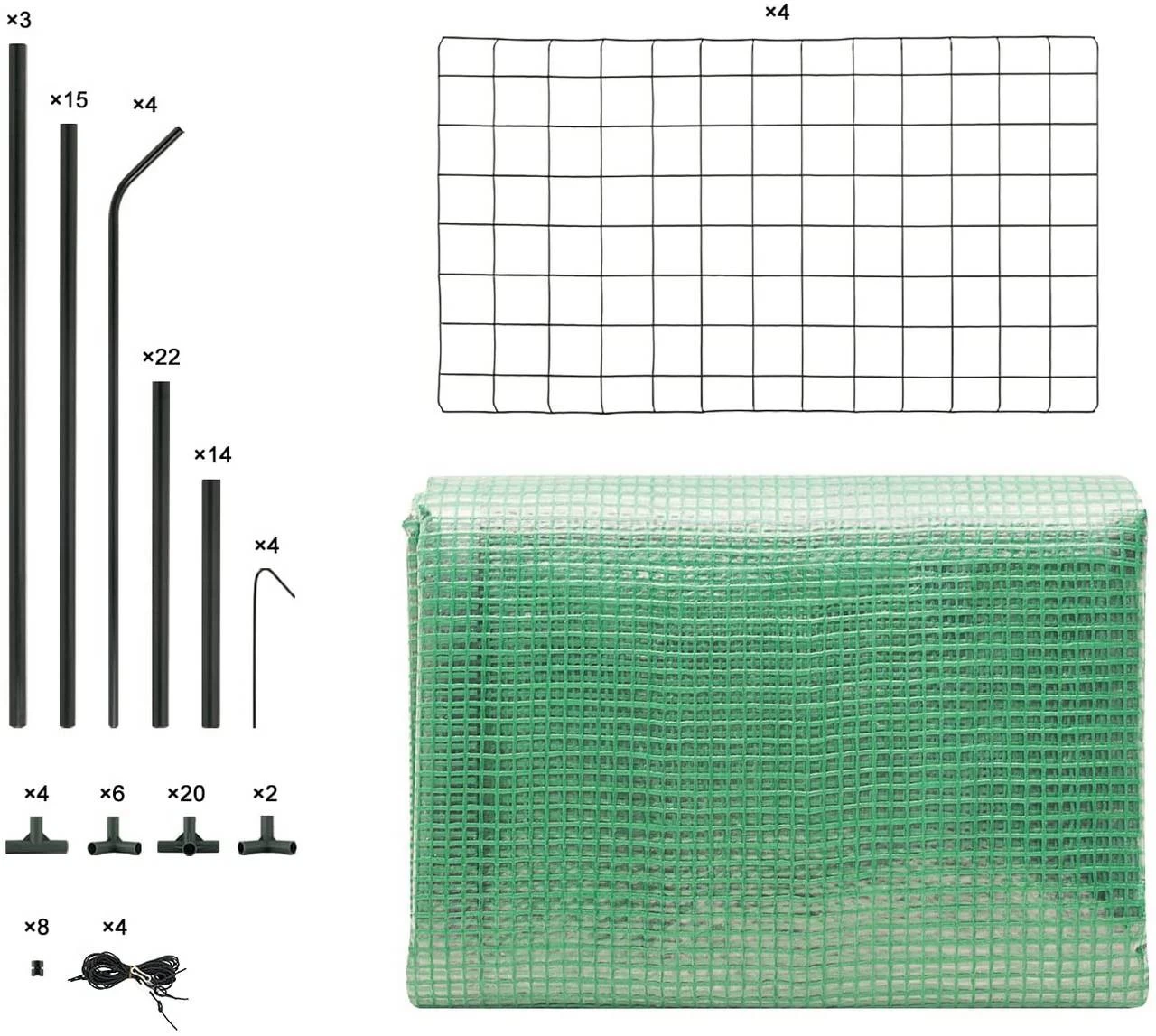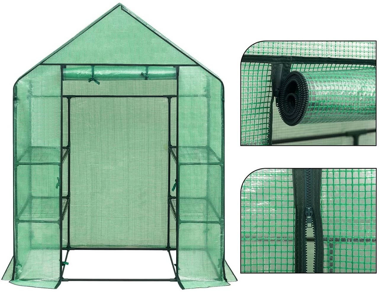 - Pulverbeschichtetes Metallgestell mit UV-beständiger PE-Folie &Mit Heringen und aufrollbarer Tür