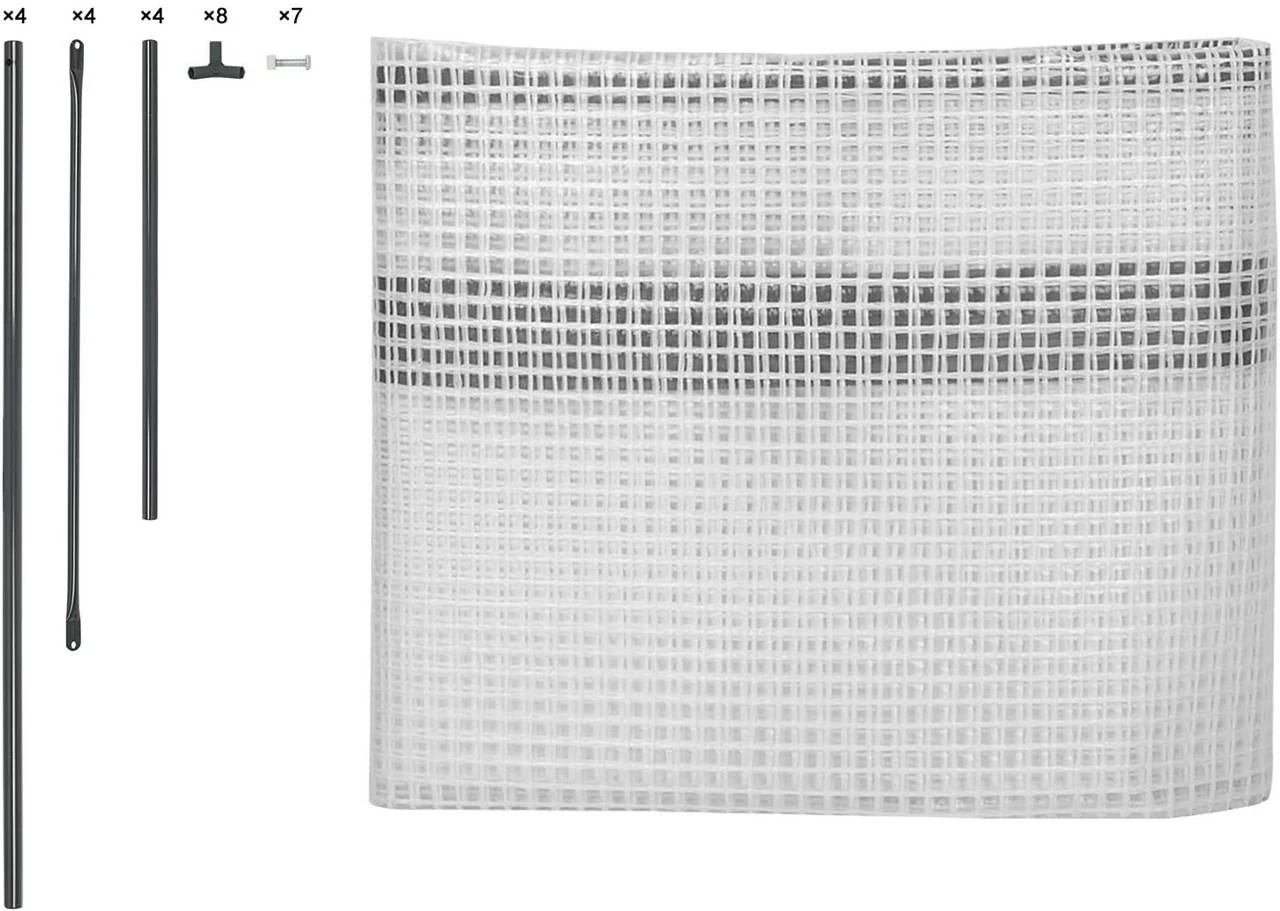 - Material: Pulverbeschichtete Stahlrohre + PE Gitterplane