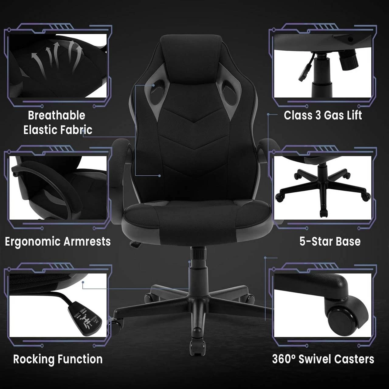 Bequemer Racing-Stuhl: Bezogen mit atmungsaktivem und elastischem Mesh-Gewebe, gepolstert mit elastischem Schaumstoff, hat er gute Wärmeableitung und ist bequem zu sitzen.