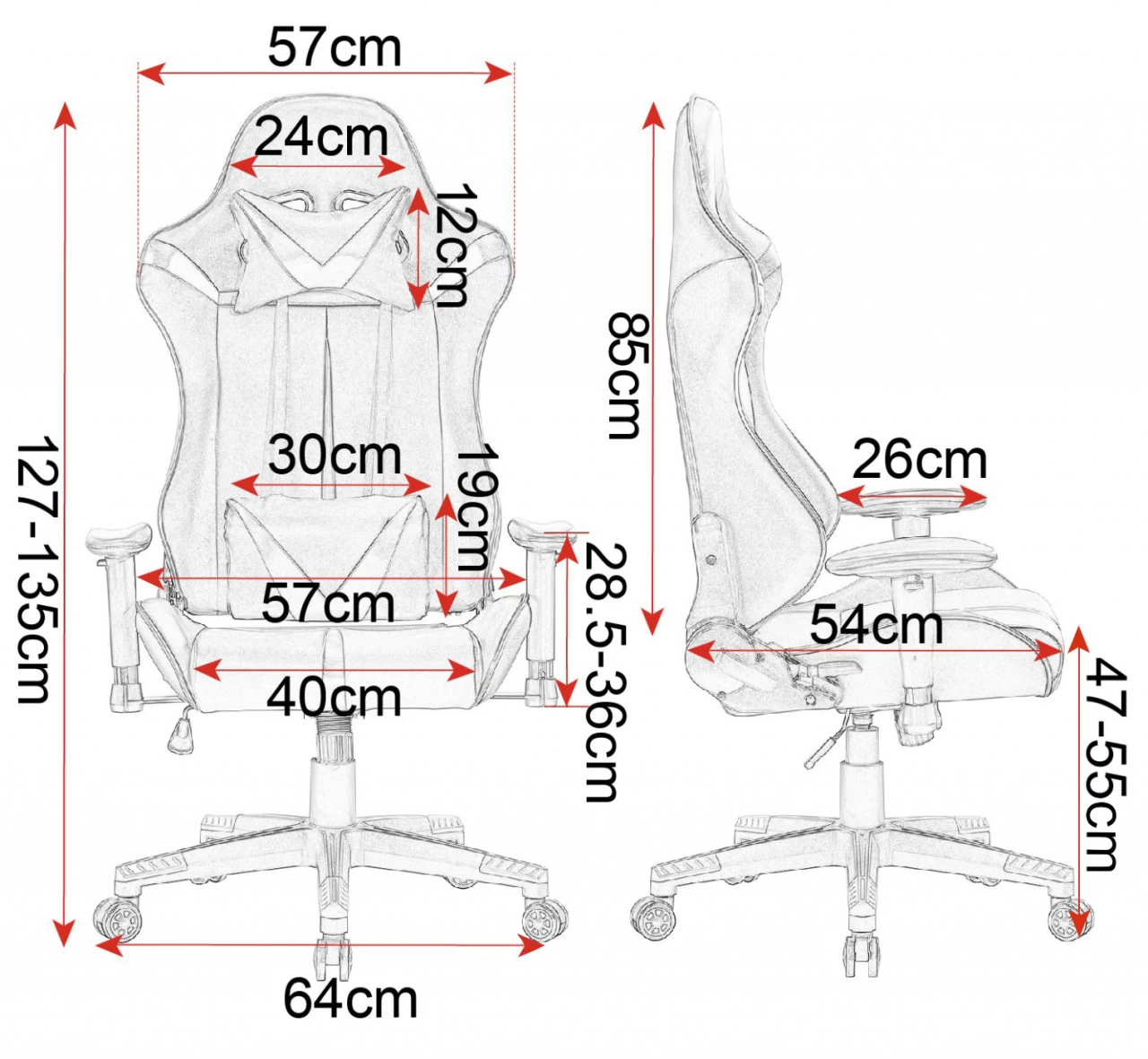 Metallgestell und Fünf-Sterne-Fuß: Das große Metallgestell (ø: 64 cm) macht den Gaming-Stuhl stabil und sicher. Mit den um 360° drehbaren Nylonrollen können Sie den Stuhl sanft, frei und leise bewegen. Die Nylonrollen können auch Ihren Boden schützen.