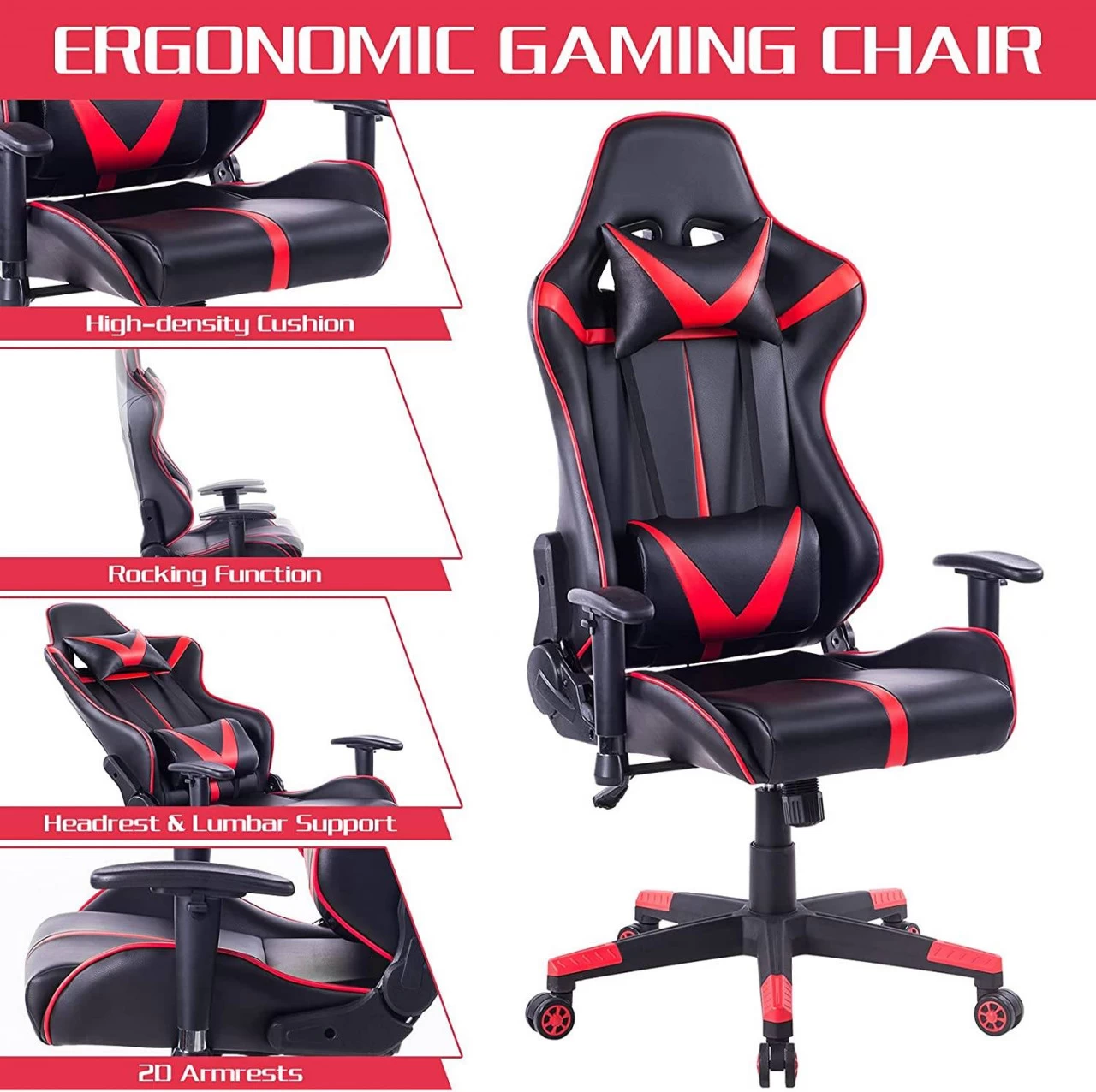 - ERGONOMISCH: Der WOLTU Gaming-Stuhl folgt ergonomischen Prinzipien und ist mit einer umlaufenden hohen Rückenlehne (Höhe: 85 cm) ausgestattet, die sich perfekt an Ihren Rücken und Lendenwirbel anschmiegt und ein volles Gefühl der Umhüllung bietet. Gleichzeitig ist der Stuhl mit einer vollständigen komfortablen Kopfstütze und Lendenwirbelstütze und frei verstellbaren 2D-Armlehnen ausgestattet, damit Sie die bequemste und ideale Sitzhaltung finden