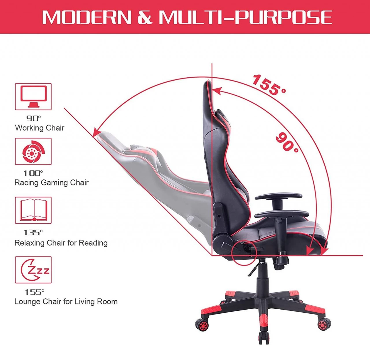 - MULTIFUNKTIONAL: Der WOLTU Computerstuhl hat eine Wippfunktion und eine Liegefunktion (90°-155°), die Sitzhöhe ist per Hebel verstellbar, so sind dem Spielen und Arbeiten keine Grenzen gesetzt. Der Computerstuhl hat eine verstellbare Rückenlehne und mehrere schöne Farben, die sich an die vielseitige Nutzung anpassen. Er kann z.B. als Bürostuhl oder Spielstuhl mit 90°-100° Neigung, als Relax-Lesesessel mit 135°-155° Neigung im Büro, Arbeitszimmer, Schlafzimmer usw. verwendet werden