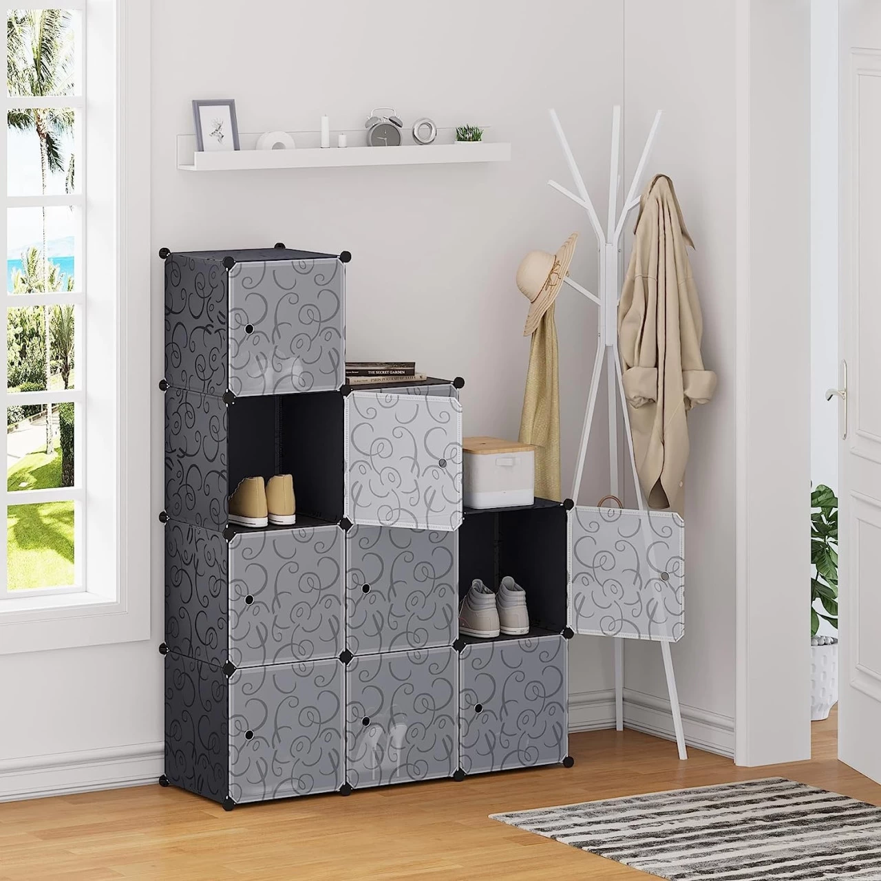 - Staubdicht & leicht zu reinigen: Es gibt 9 Platten als Türen, um die Gegenstände im Inneren vor Staub zu schützen. Und die Ösen an den Türen ermöglichen ein einfaches Öffnen. Sie können den Aufbewahrungsschrank leicht mit einem feuchten Tuch reinigen
