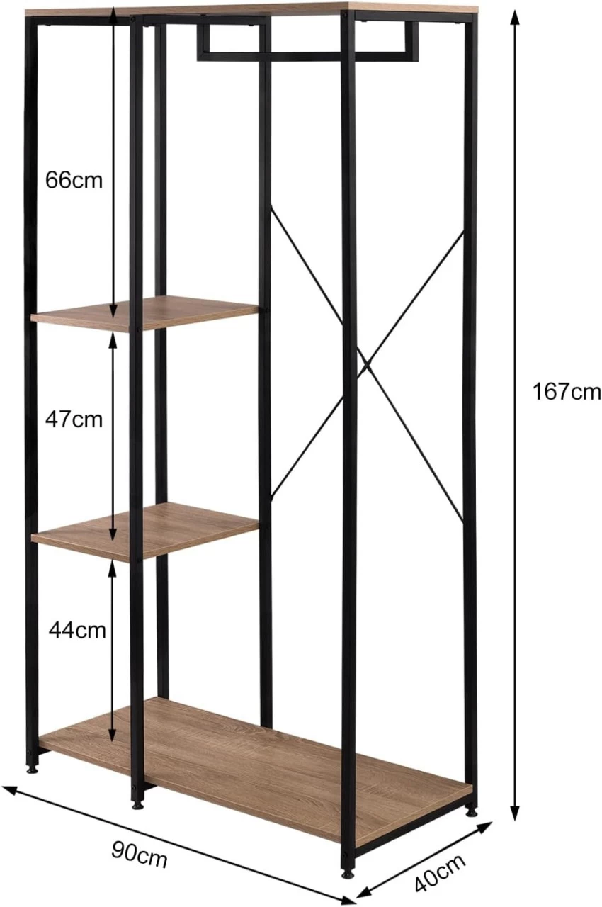 - Große Aufnahmekapazität: Der offene Kleiderschrank wird in einen Hängebereich und einen Ablagebereich untergeteilt. Durch kompaktes Design und rationale Abteilung ist der Schrankplatzsparend und schafftüber mehrere Ebenen zur Aufbewahrungsmöglichkeiten.Alle Arten von Kleidung könnensortiert und ordentlich angeordnet werden. Die Gesamtgröße liegt bei ca. 40 x 167 x 90 cm (B x H x L)