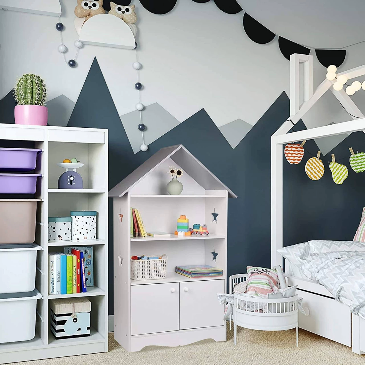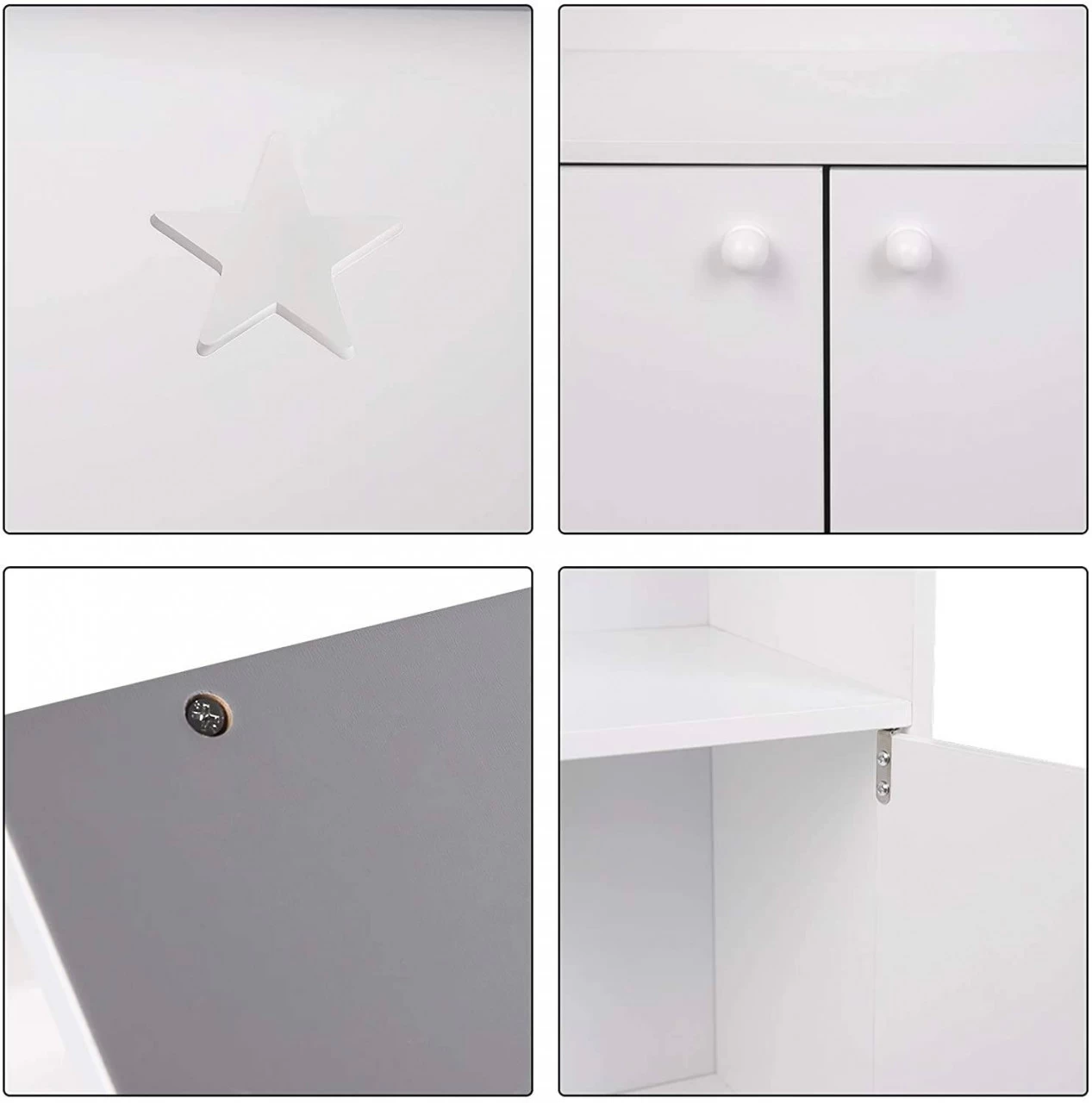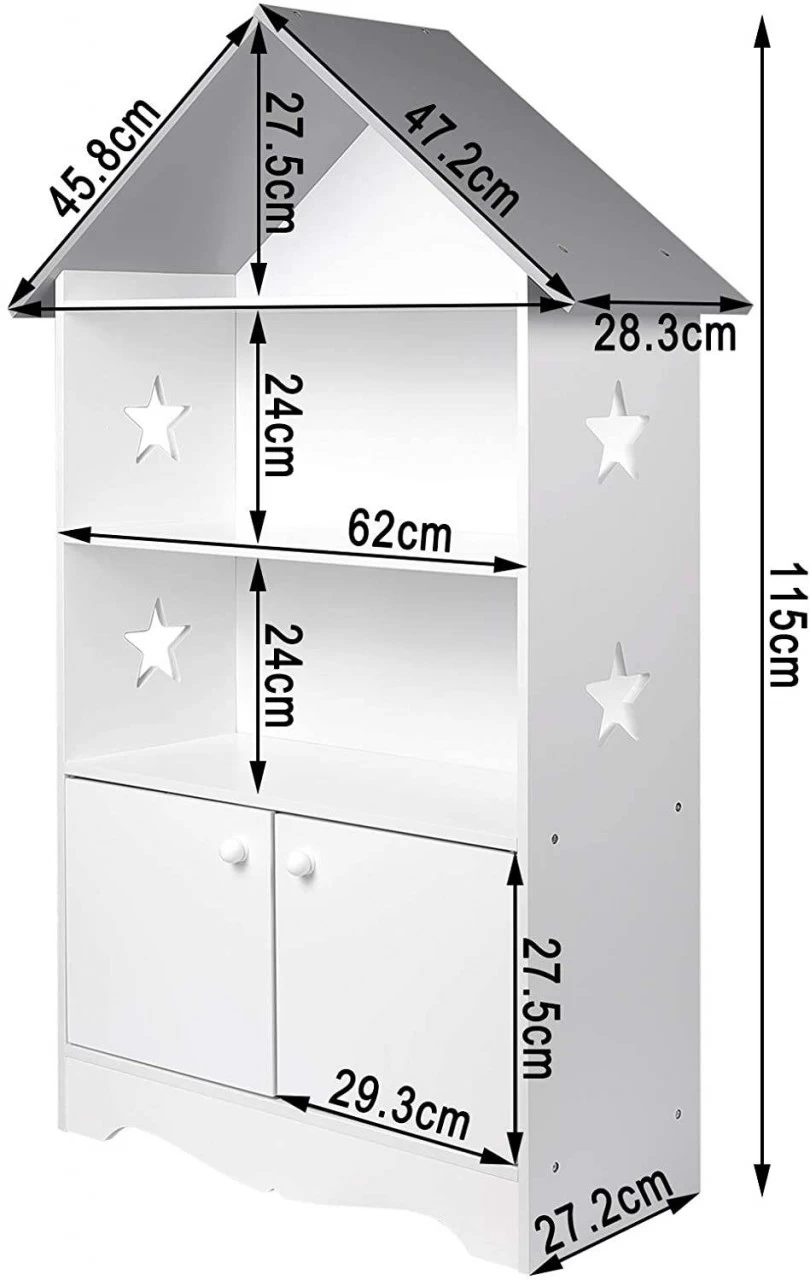 - DEKORATION & LAGERUNG – Dieses Bücherregal für Kinder verfügt über 3 Regale und einen kleinen Lagerschrank, bietet ausreichend Platz für Kinderartikel, ein sehr gutes Design für die Lagerung von Büchern oder Spielzeug. Dieses Kinderregal enthält sternförmige Hohlelemente, die leicht die Aufmerksamkeit und das Interesse von Kindern auf sich ziehen können.