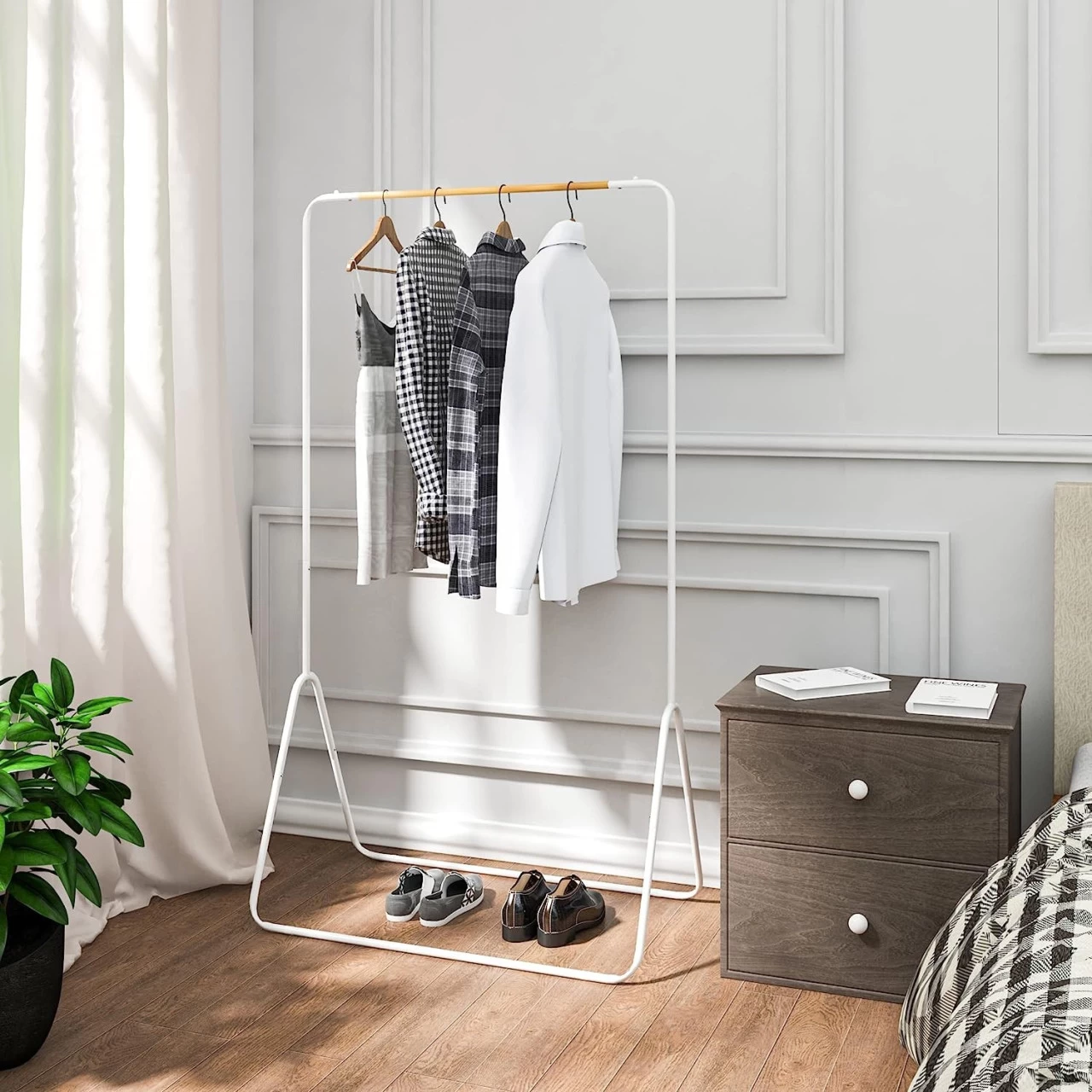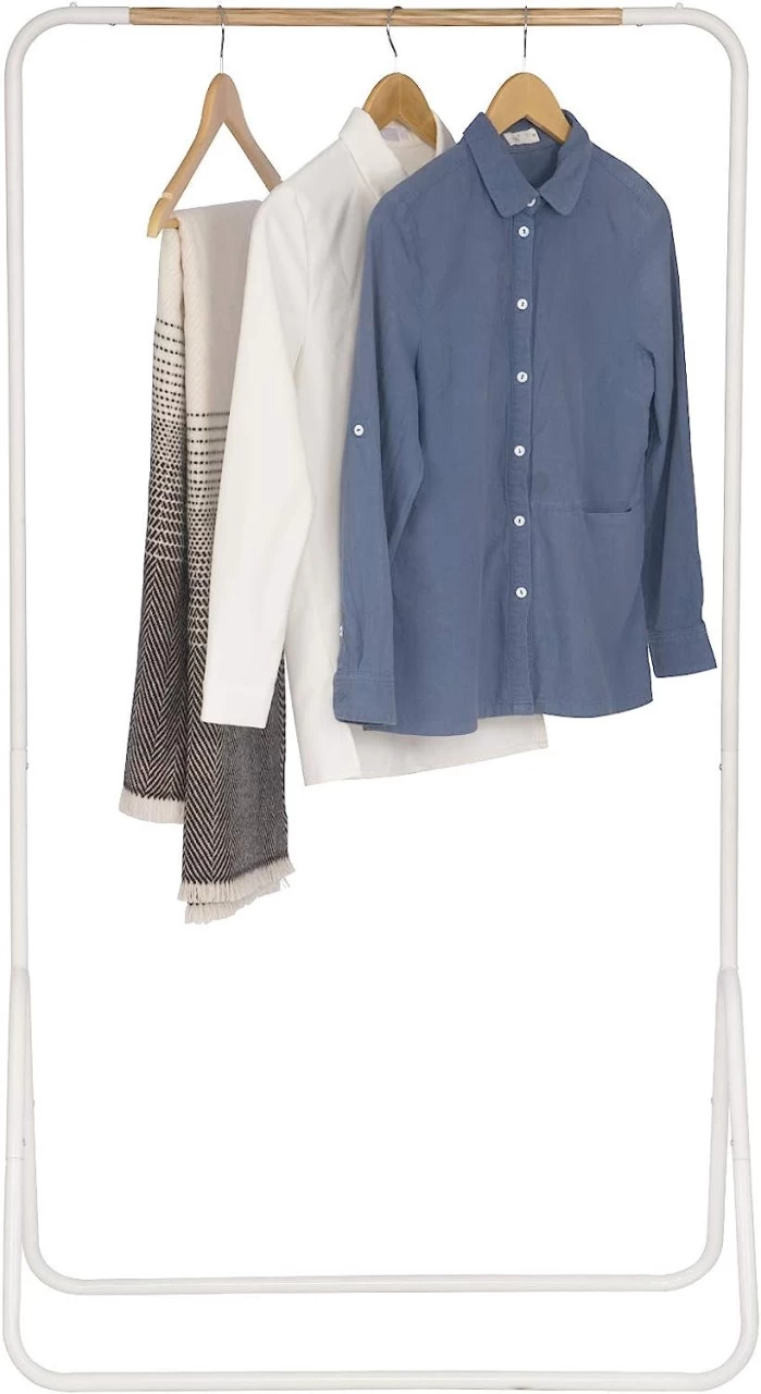 - Vielseitig einsetzbar – An der oberen Kleiderstange kann man Blusen, Jacken, Röcke und Hosen mit Kleiderbügeln knitterfrei und griffbereit aufhängen