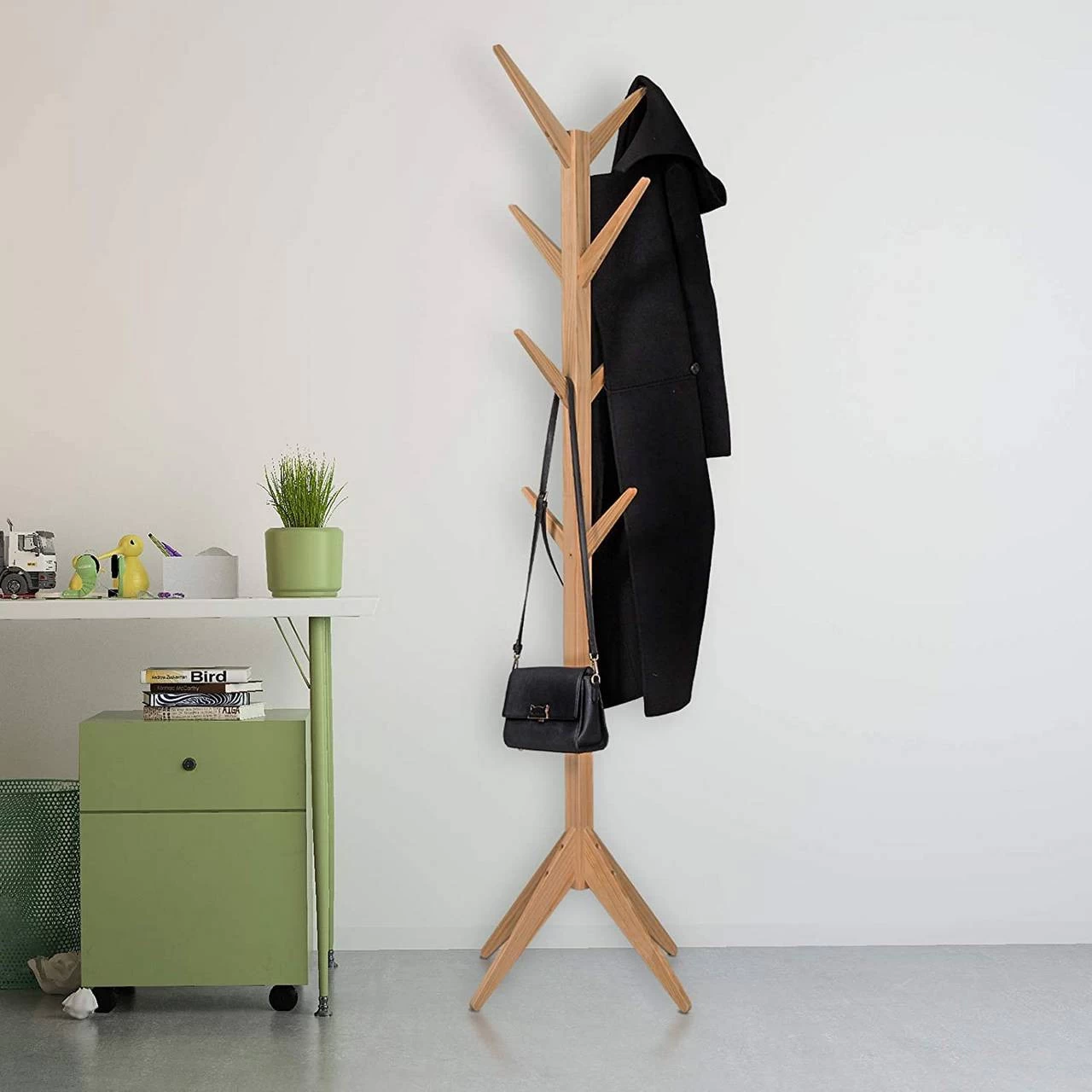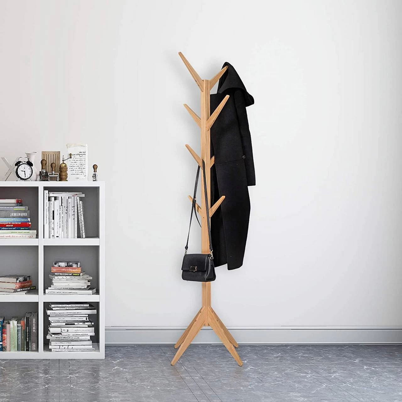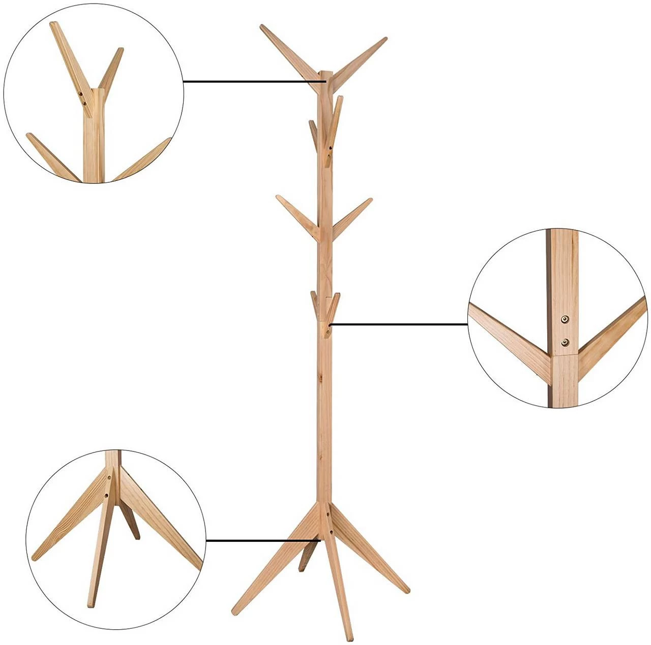 - Kleiderständer aus Massivholz verfügt über starke Stabilität und lange Lebensdauer. 8 Haken werden verwendet, um Ihre Mäntel, Schals, Taschen, Mützen usw aufzubewahren.