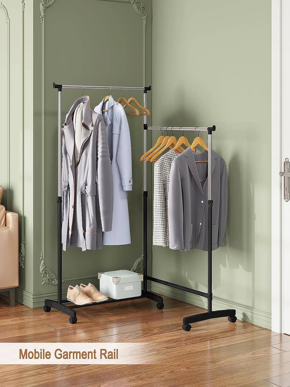 Platzsparend: Der Garderobenständer mit Rollen nimmt wenig Platz ein und kann überall in Ihrem Haus für einen bequemen Gebrauch aufgestellt werden.