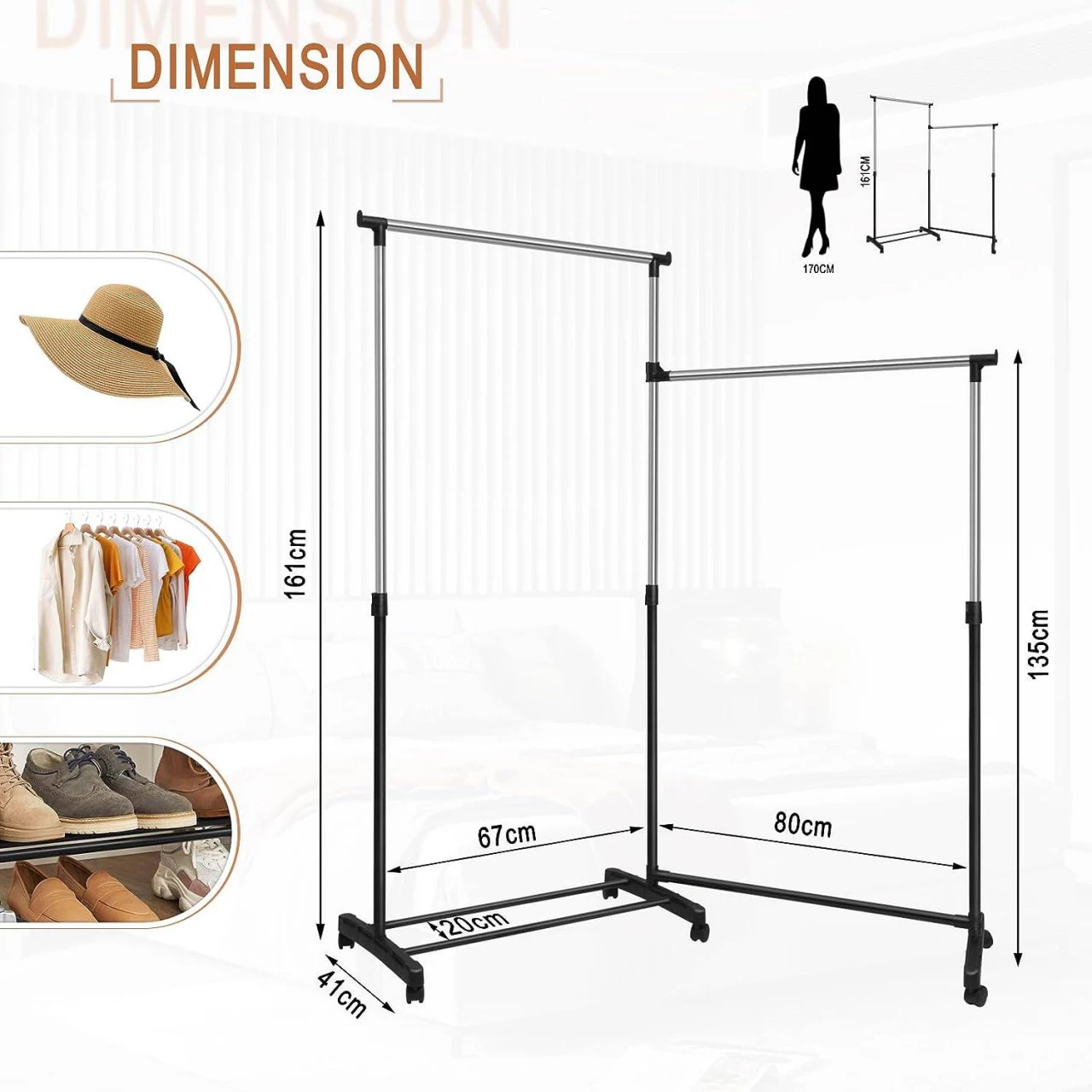 - GRÖSSE & EINFACHE MONTAGE: Der geradlinige Kleiderständer misst 155x161x41 cm. Die Montage ist recht einfach. Kein Werkzeug ist erforderlich und folgen Sie einfach unserer detaillierten Anleitung