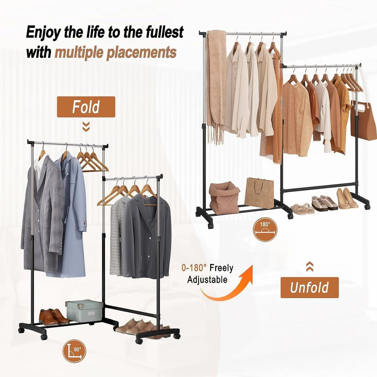 - ZWEI VERWENDUNGSMÖGLICHKEITEN: Dieser Kleiderständer auf Rollen lässt sich leicht zwischen L-Form für Platzsparen und Linienform für übersichtliche Ordnung verändern, um Ihren Bedürfnissen und Ihrer Raumgestaltung gerecht zu werden