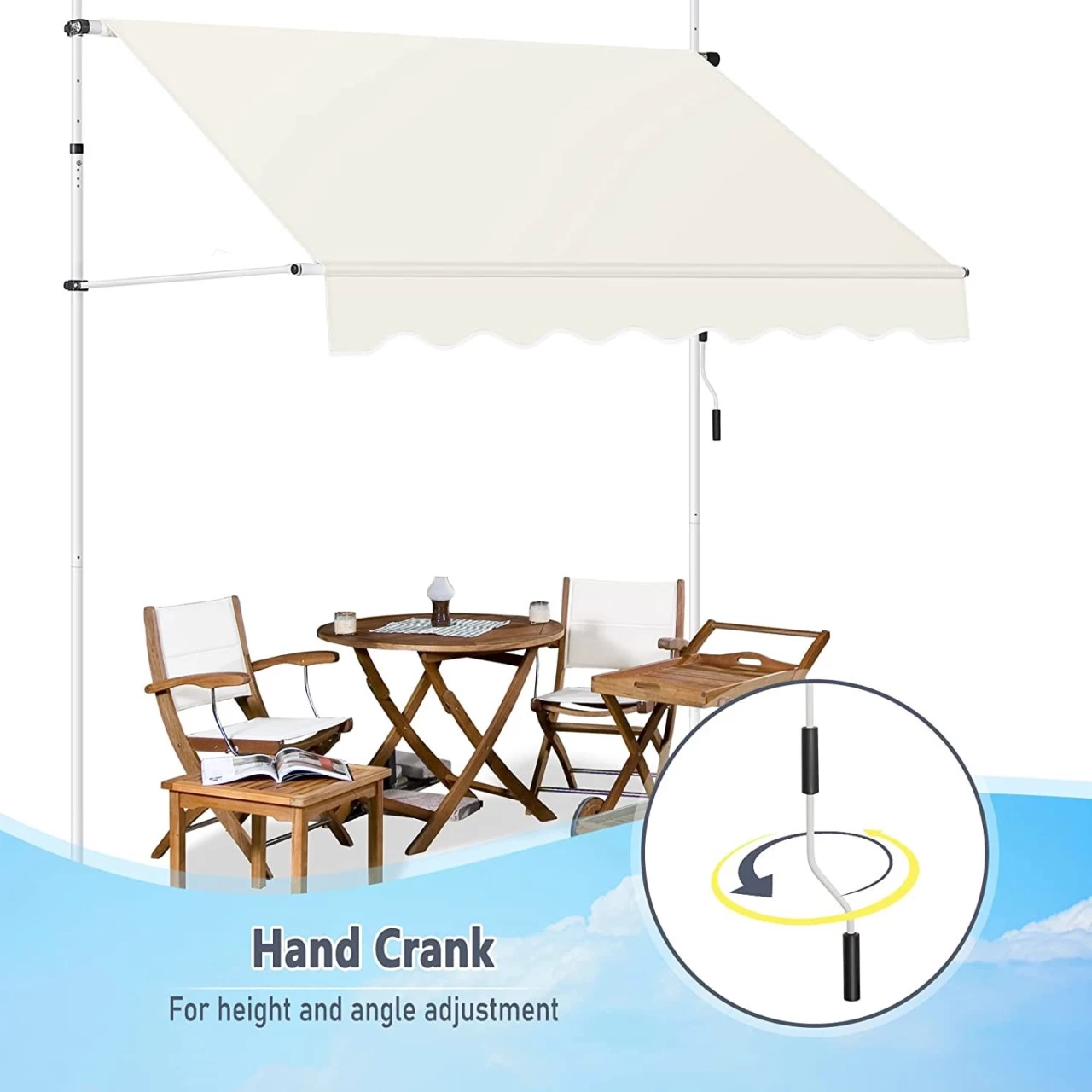 - Höhen- und Winkelverstellbar: Mittels der Handkurbel kann das Sonnentuch diagonal und vertikal ausgefahren werden. Über die an den Spannstangen befestigten Ausfallarme können Sie den Neigungswinkel je nach Ihren Bedürnissen und den Sonnenzustand von 0° bis 90° verstellen. Beim Nichtgebrauch kann das Tuch platzsparend eingefahren werden
