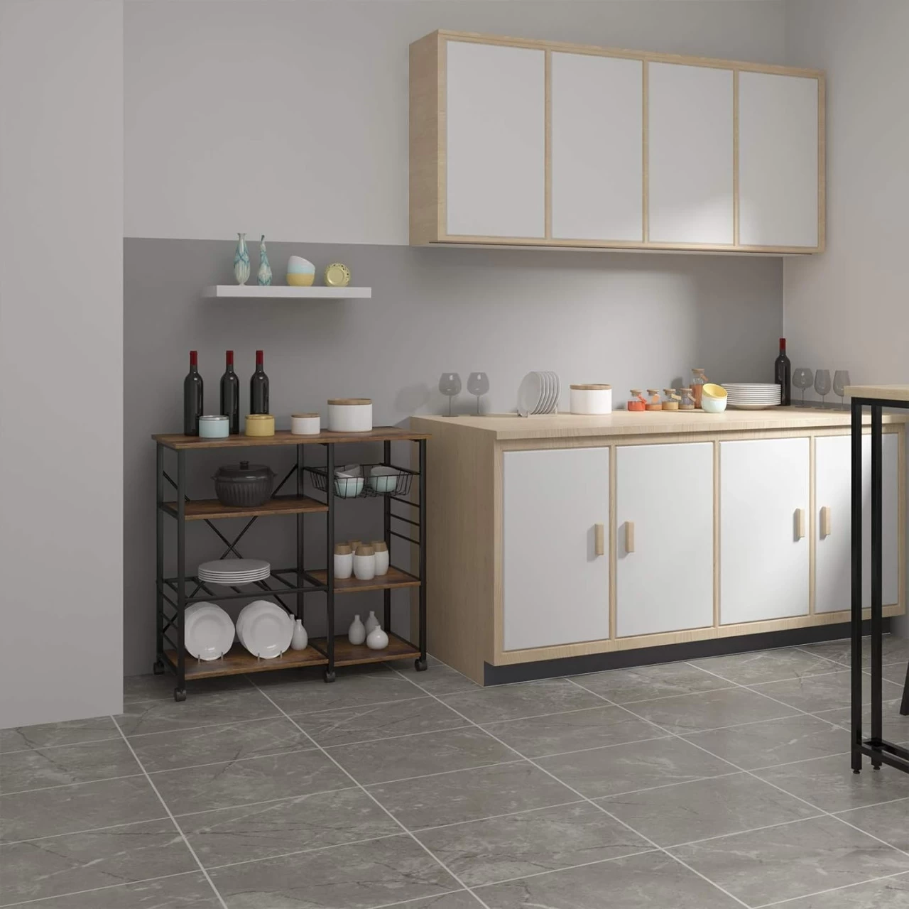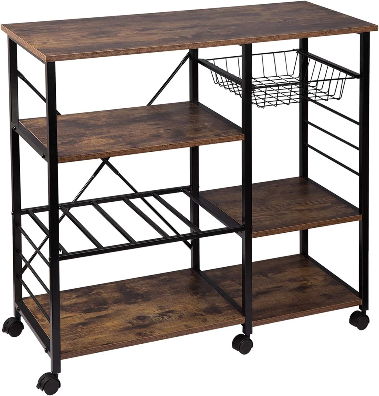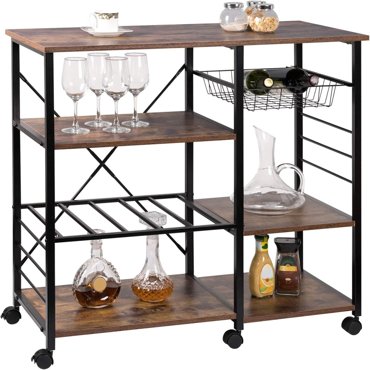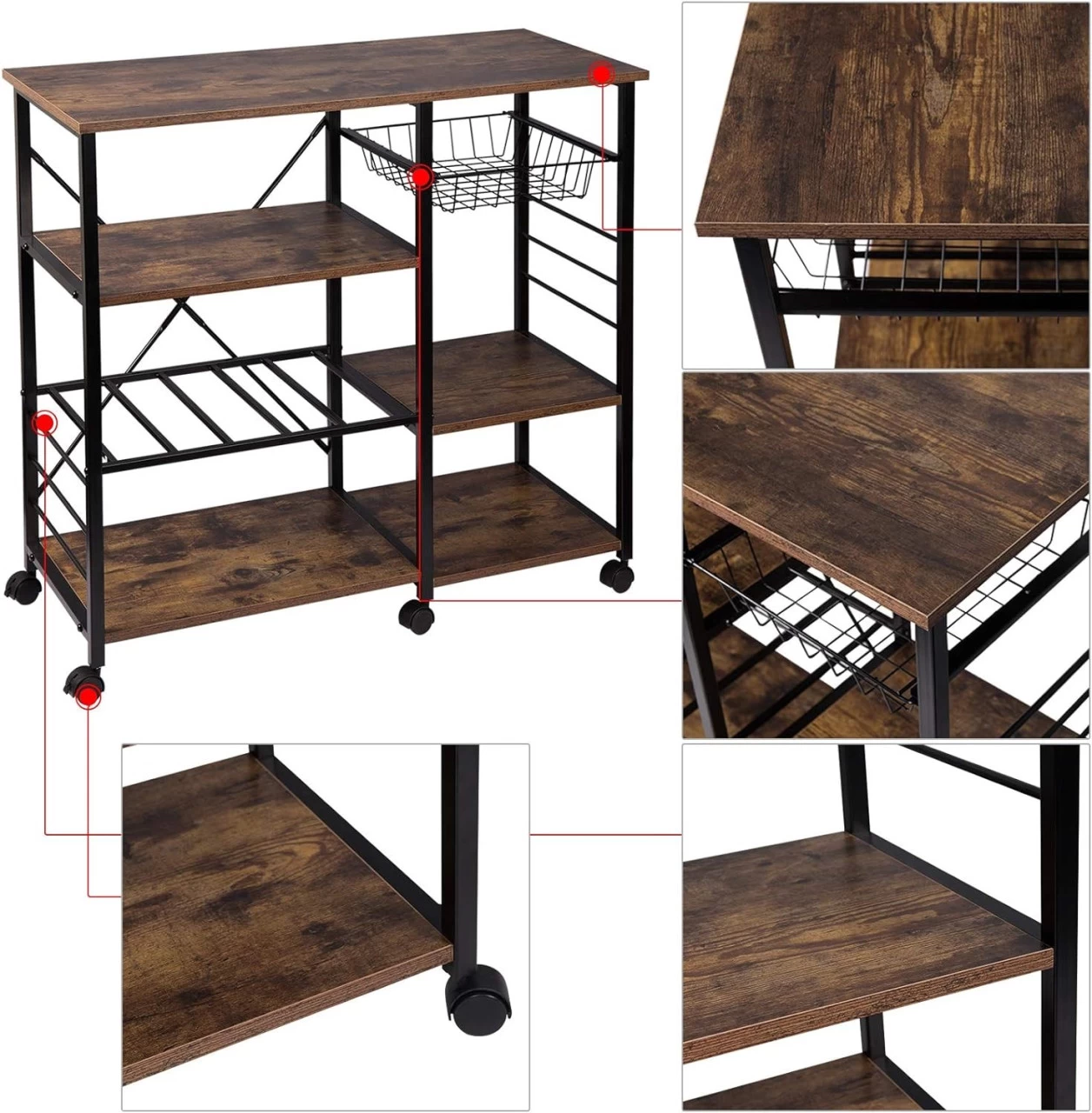 - Multifunktional: Den Rollwagen kann als Küchenregal oder Servierwagen verwendet werden. Als Küchenregal können Sie Ihre Minigeräte wie z.B. Minibackofen auf der obersten Ebene platzieren. Das Metallregal kann als Flaschenhalter verwendet werden. (Achten Sie beim Abstellen auf die Abmessungen der Flaschen.) Selbstverständlich können Sie entscheiden, wie Sie den Stauraum nutzen möchten. Als Servierwagen können Sie frisch zubereitete Speisen von A nach B transportieren.