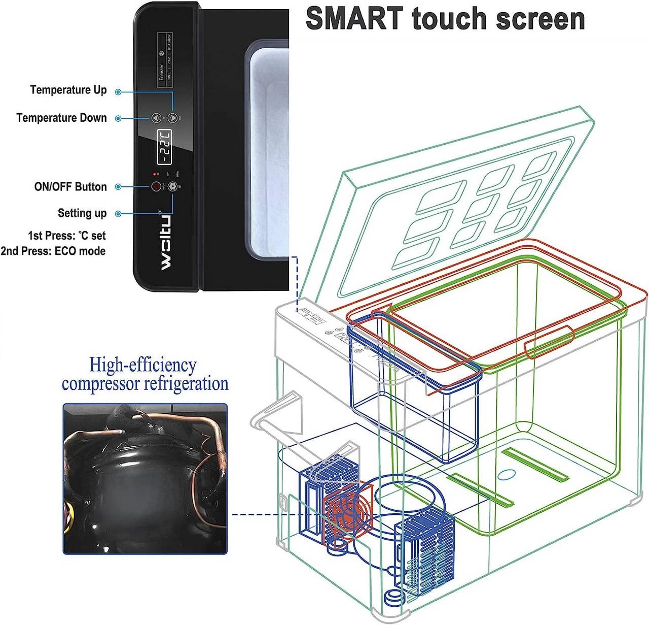 - Einfache zu bedienen und tragbar: Über das Bedienfeld mit digitaler Temperaturanzeige können Sie den gesamten Kühlschrank einfach steuern und seine Funktionsweise überprüfen. Es stellt zwei Programme wie das Energiesparen (ECO) und die hohe Geschwindigkeit (MAX) zur Auswahl. Je nach Bedarf können Sie im Display zwischen Fahrenheit und Celsius wählen. Das geringe Gewicht von 17,6 kg ist bequem für Sie zu tragen und zu führen.