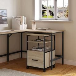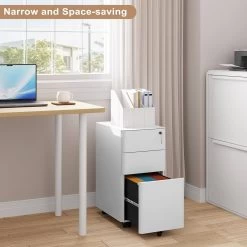 WOLTU Rollcontainer, Aktenschrank Abschließbar, Mit 3 Schubladen 5 Rollen Hängeregistratur