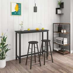 1 X Bartisch + 2 X Barhocker Set, Metallgestell, MDF