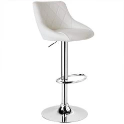 2er Set Barhocker, Stufenlose Höhenverstellung, Verchromter Stahl Kunstleder Weiß