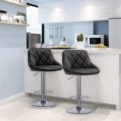 2er Set Barhocker, Stufenlose Höhenverstellung, Verchromter Stahl Kunstleder Schwarz