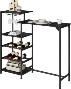WOLTU Bartisch Mit 4 Ablagen 2 Glashaltern, Industrieller Hochtisch Aus Metall Holzwerkstoff