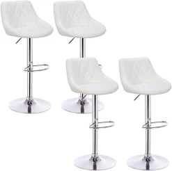 4er Set Barhocker, Stufenlose Höhenverstellung, Verchromter Stahl Kunstleder