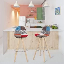 Barhocker 2er Set Barstuhl Aus Leinen Holzgestell Mit Lehne + Fußstütze