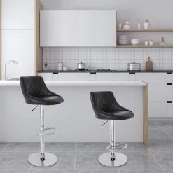 2er-Set Höhenverstellbarer Barhocker Aus Kunstleder