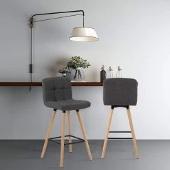 WOLTU 2er Set Tresenhocker, Leinen, Verchromter Stahl, Gepolsterte Sitzfläche Dunkelgrau