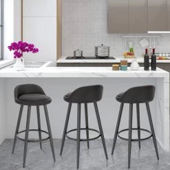 WOLTU Barhocker Barstuhl Mit Rückenlehne Drehbar Kunstleder In Antiklederoptik Stahl