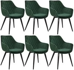 6er-Set Esszimmerstühle Mit Rückenlehne, Sitzfläche Aus Samt, Gestell Aus Metallbeine