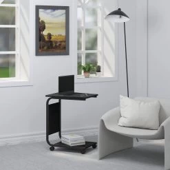 Beistelltisch Couchtisch Mit 2 Ablagen 1 Seitentasche, Sofatisch Auf Rollen, Wohnzimmertisch Schwarz