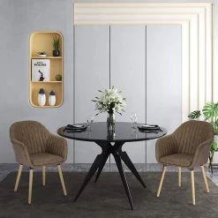 Esszimmerstühle 2er-Set, Stuhl Mit Armlehnen Rückenlehne, Mit Samtbezug, Metallbeine