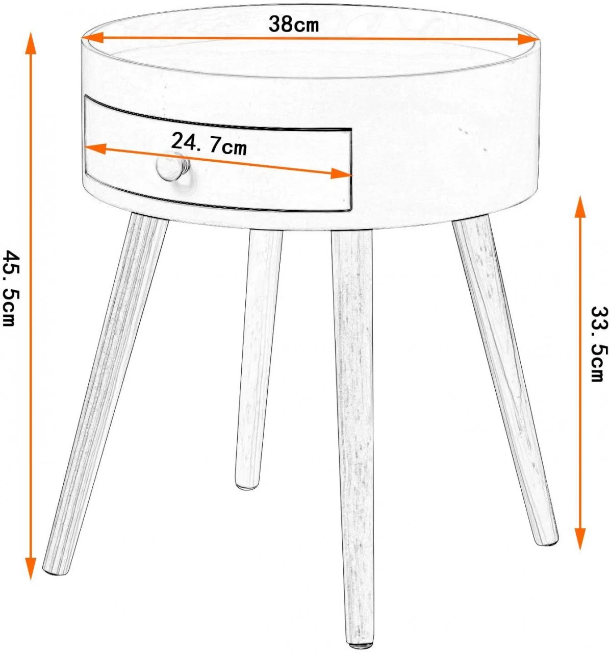 - Platzsparend: Mit den Maßen von 38×45,5 cm (φxH) können Sie den kompakten Nachttisch in jeden Raum oder eine Ecke stellen, um Platz optimal zu nutzen. Funktional eignet er sich hervorragend als Nachtkonsole, Beistelltisch, Sofatisch oder Couchtisch