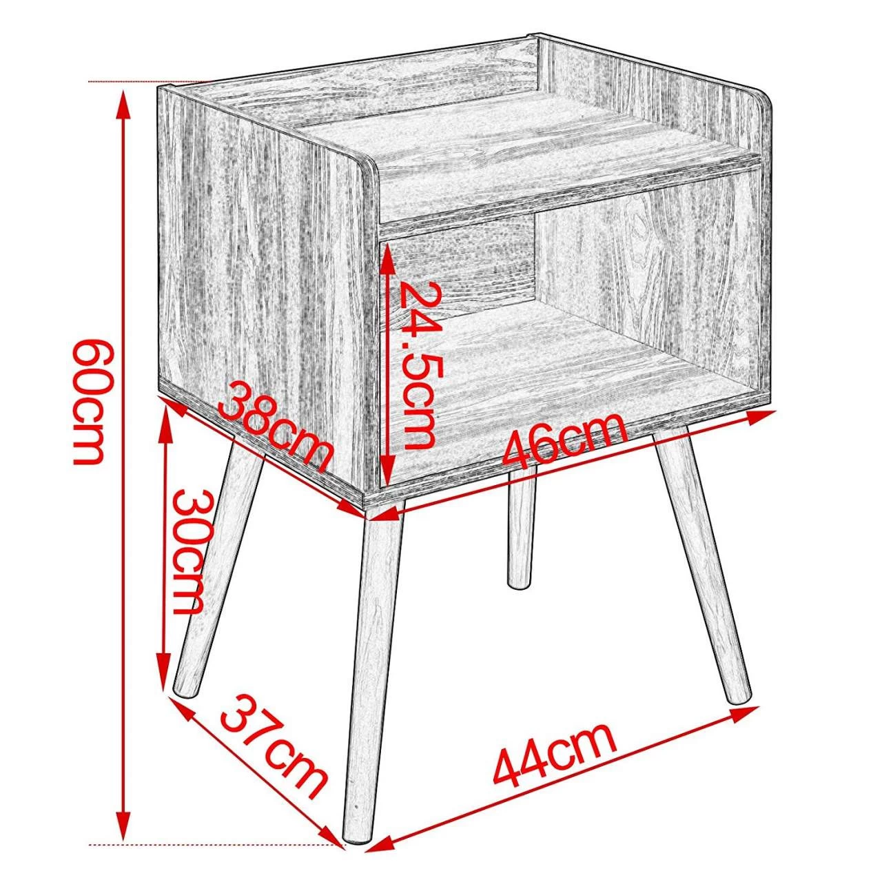 - Stabile und robuste Konstruktion: Der skandinavische Nachttisch ist aus Holzwerkstoff der Klasse E1 gefertigt. Die vier Beine aus Kiefernholz sind mittels Schrauben und Edelstahlplatten am Korpus anzubringen. Nach Zusammenbau ist das Gestell robust und belastbar. Die Anti-Rutsch-Pads an den Beinen schützen und schonen den Boden und machen den Nachttisch standfester