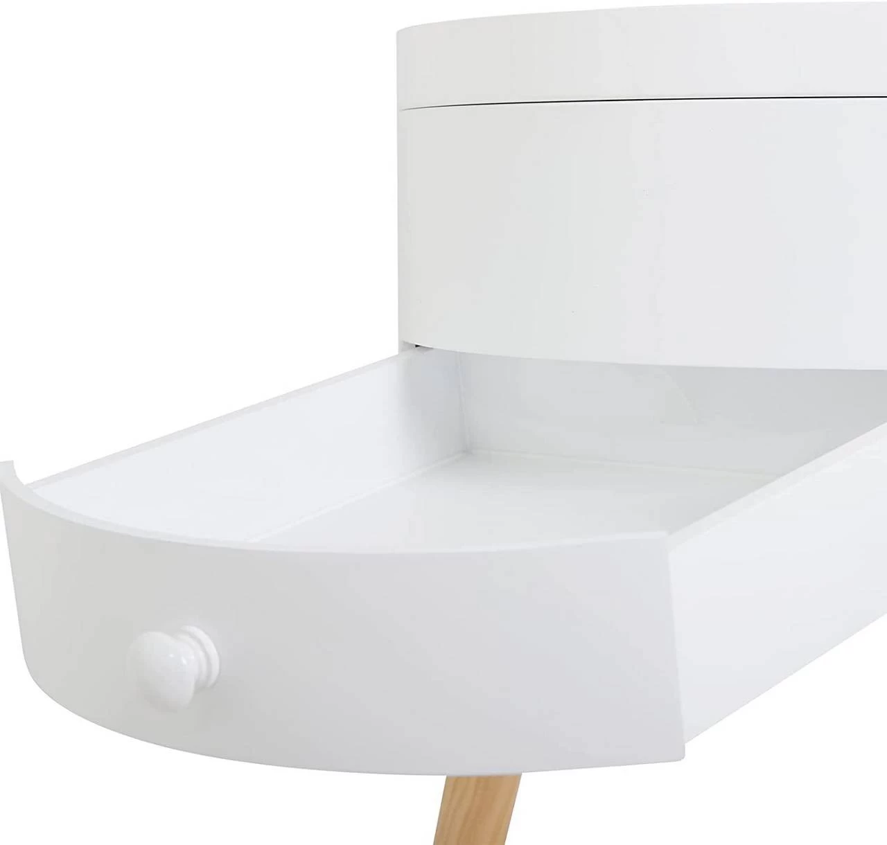 - Durchdachtes Detail: Der zylindrische Tisch kann versehentliche Stöße verhindern. Der runde Griff erleichtert das Öffnen und Schließen der Schublade. Alle Füße sind mit rutschfesten Fußpads ausgestattet, um Ihren Boden vor Kratzern zu schützen