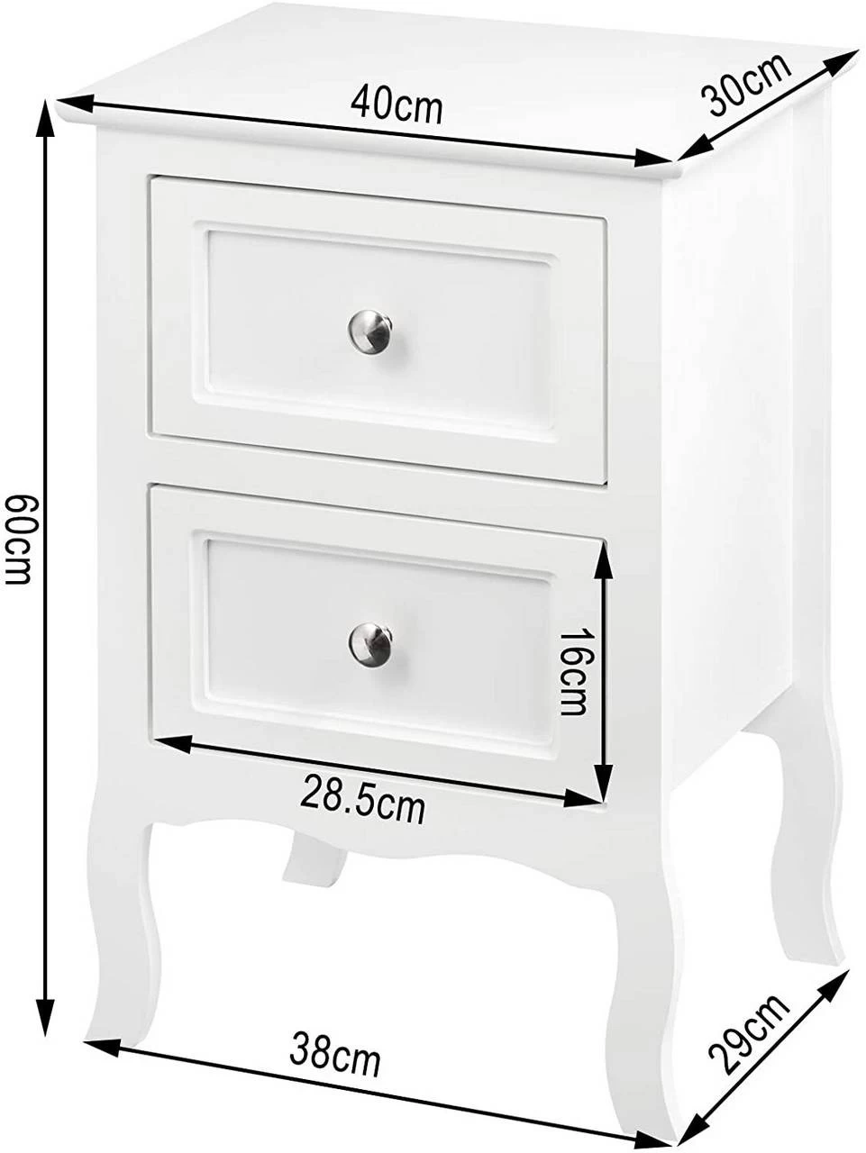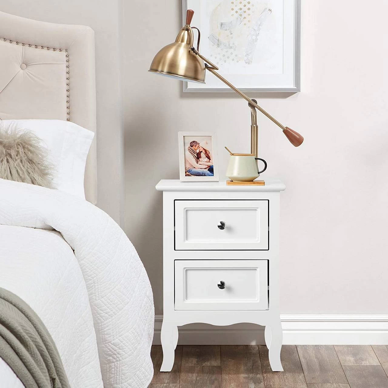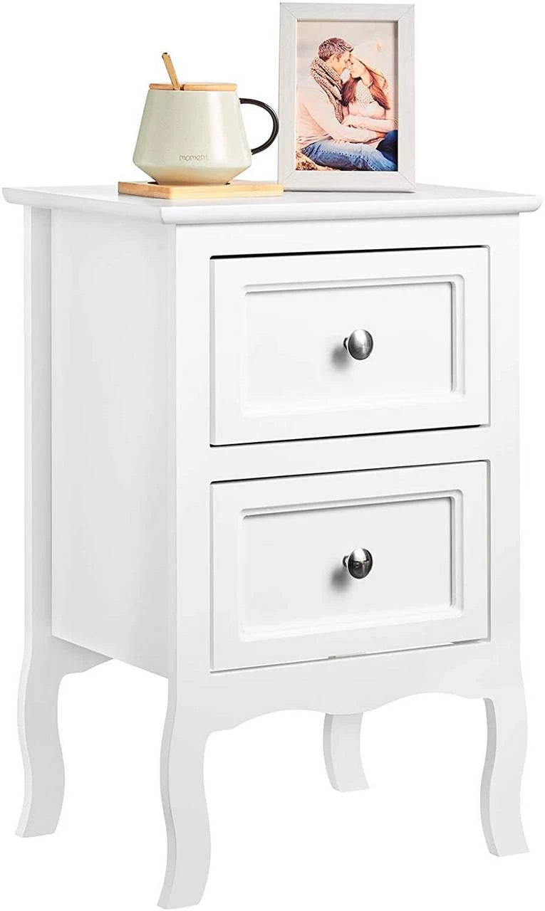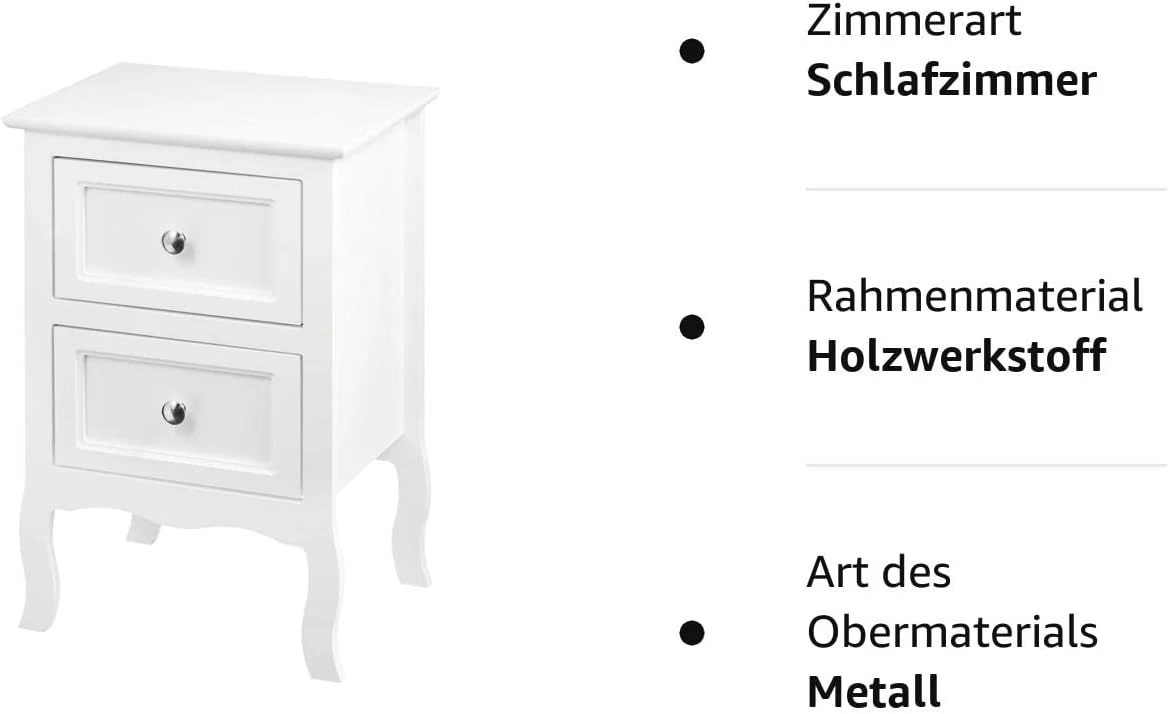 - Elegant und einfach zu kombinieren: Der schlichte moderne Stil in Kombination mit der weißen Farbe, den Schubladenknöpfen aus Metall und den geschwungenen Beinen im Barockstil machen diesen Nachttisch aus Holzplatte leicht kombinierbar mit jedem Einrichtungsstil und schaffen eine elegante und modische Atmosphäre. Dank seines kompakten Designs eignet er sich für jede Ecke im Schlafzimmer, Flur, Wohnzimmer, Eingangsbereich usw.