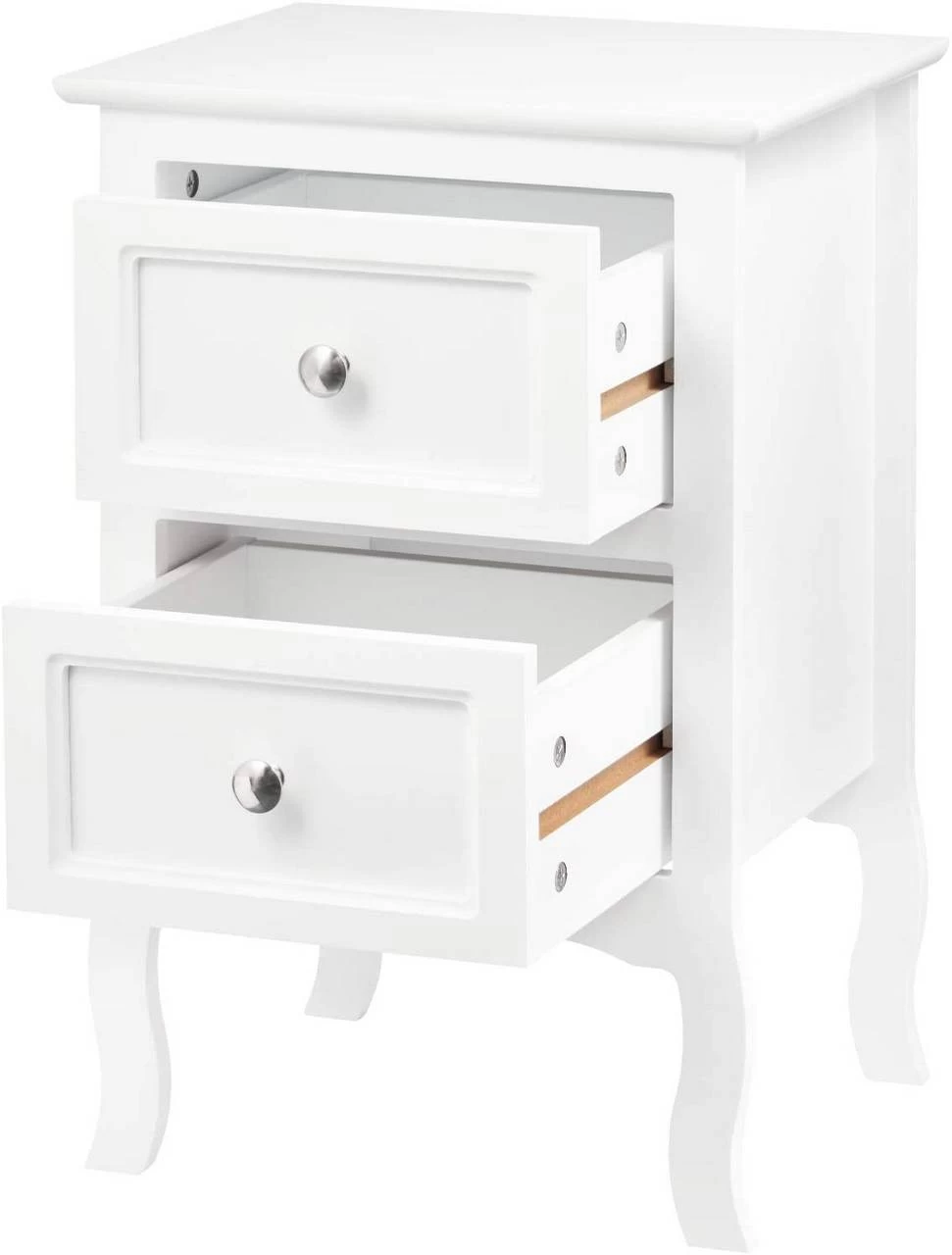Raffiniertes Design: Die geschwungenen, barock anmutenden Beine verleihen diesem weißen Nachttisch einen Hauch von Eleganz. Er fügt sich problemlos in jeden Einrichtungsstil ein, schafft eine modische Atmosphäre in Ihrem Zuhause und erleichtert gleichzeitig die Reinigung.
