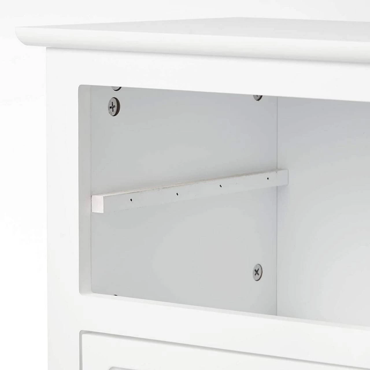 Erhöhte Beine: Die untere Ablage ist 9 cm vom Boden entfernt, sodass Sie die täglichen Reinigungsarbeiten leicht durchführen können. Darüber hinaus kommt die untere Ablage nicht mit dem Boden in Berührung, so werden Ihre Gegenstände vor Feuchtigkeit schützt.