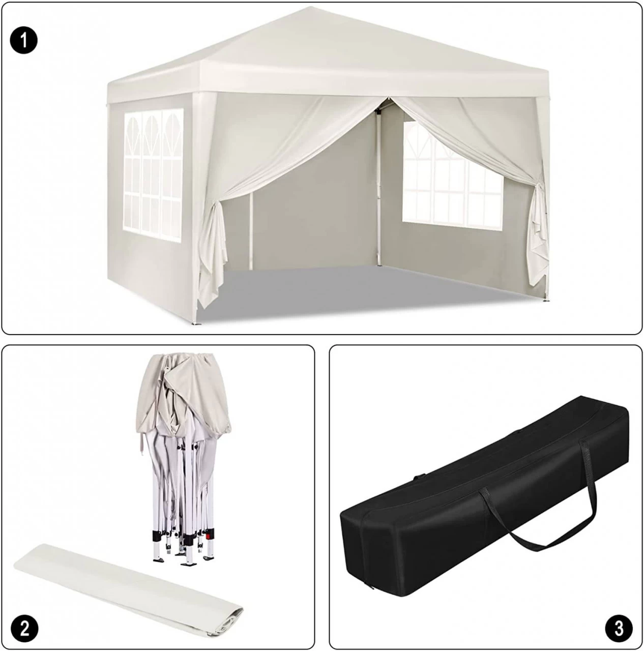 - Leichte aufzubauen und zu verstauen: Dank des Faltsystems kann der Faltpavillon schnell installiert werden. Bei Nichtgebrauch können Sie ihn zusammenklappen und in der mitgelieferten Tragetasche verstauen, was Platz spart und Transport erleichtert