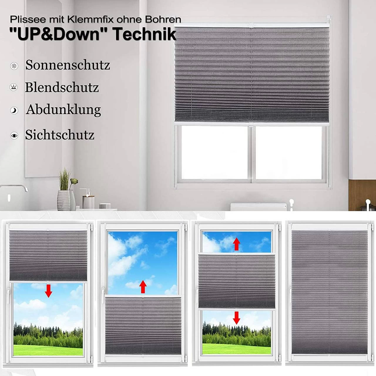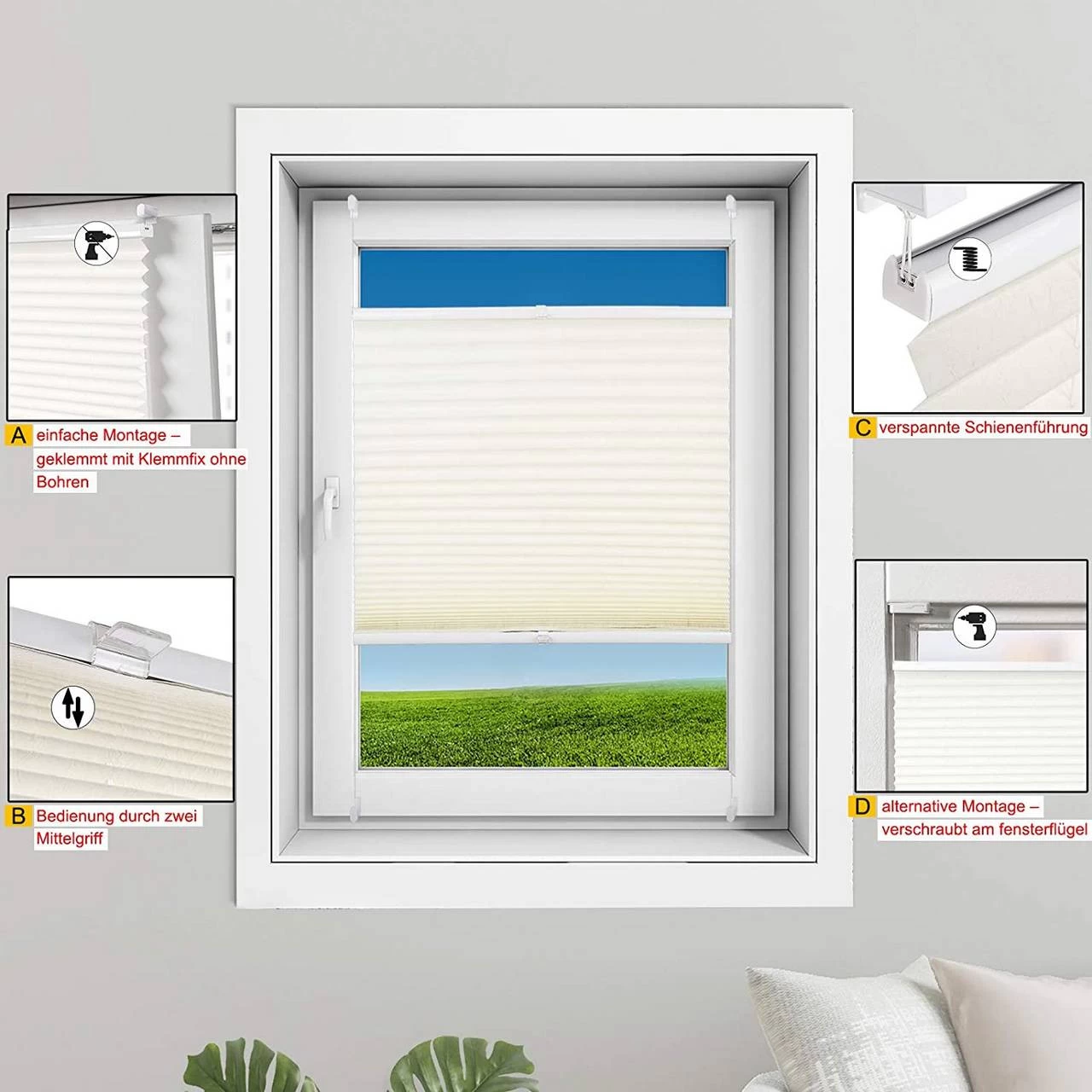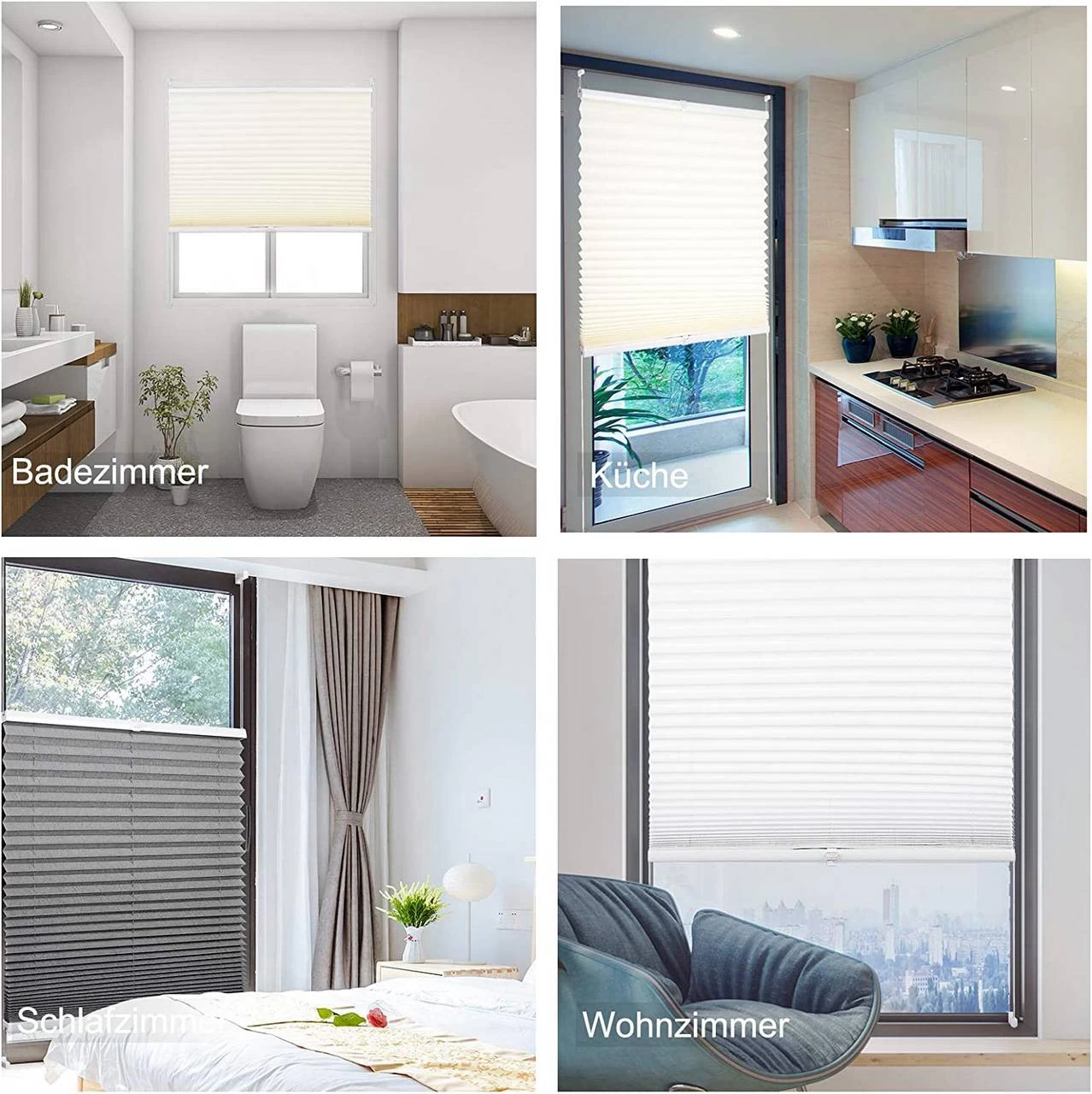 - UMFANGREICHE ANWENDUNGSMÖGLICHKEIT: Mit seiner strukturierten Optik und der unifarbenen Gestaltung wirkt das Plissee für Fenster schlicht, elegant und modern. Wir bieten auch zahlreiche Farb- und Größenoptionen zur Auswahl. Das Plisseerollo ohne Bohren ist praktisch und ästhetisch zugleich und eignet sich ideal für die Innenraumgestaltung in Wohnzimmer, Küche, Schlafzimmer, Badezimmer, Büro, Kinderzimmer, Terrassentür, Balkontür usw.