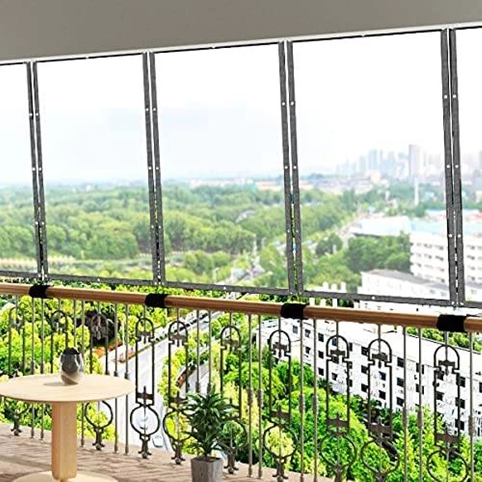 Transparentes Design: Die transparente Plane kann bei allen Gelegenheiten verwendet werden, wie z. B. Blumenhäusern, Terrassen, Balkonen, Veranden, Garagen, Gewächshäusern usw. Das transparente Design blockiert nicht die Sicht, beeinträchtigt nicht die Photosynthese und hat eine gute Wind- und Regenschutzwirkung.