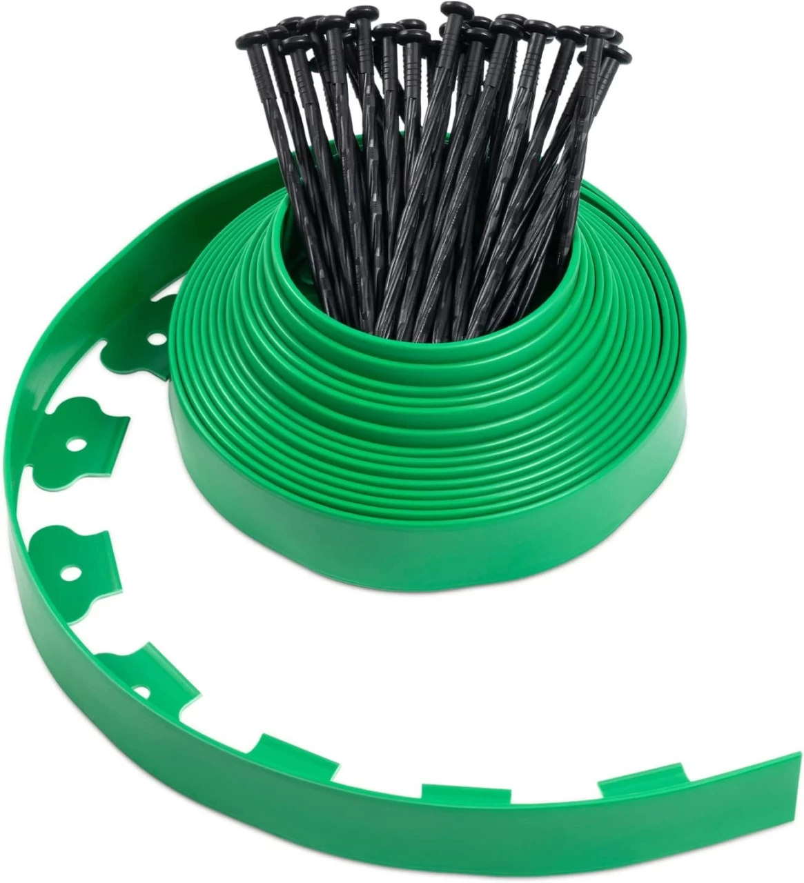 - Einfach zu Verlegen: Diese Rasenkante wird in Rolle geliefert und lässt sich flach aufklappen und leicht zuschneiden. Zur Verlegung schneiden Sie sie auf passende Länge und dann befestigen einfach mit Erdanker