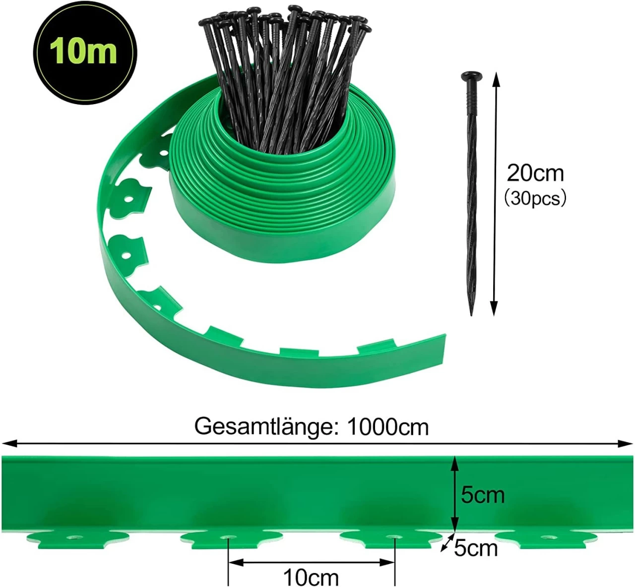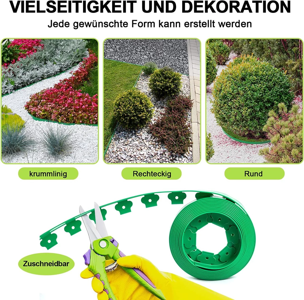 - Vielseitig Einsetzbar: Das Rasenkantenband kann nicht nur als Umrandung für Pflastersteine, Gehwege, Alleen, Gärten und Terrassen, sondern auch zur Begrenzung der Rasen und zum Sperren von Unkraut verwendet werden
