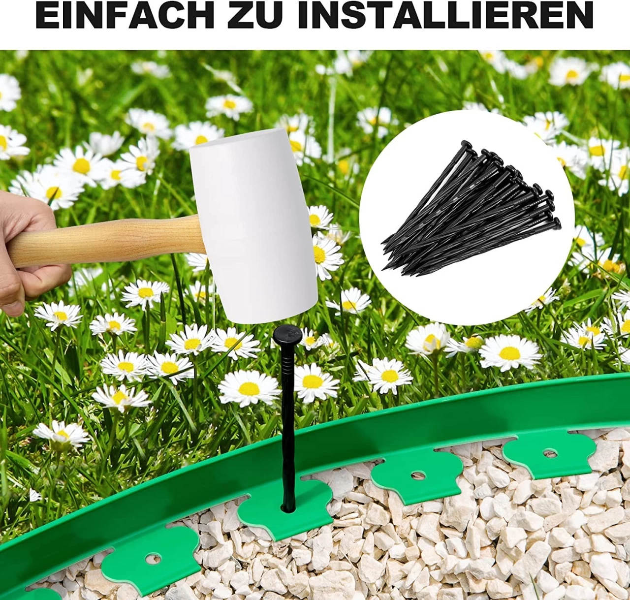 - Mit den 30/60 mitgelieferten robusten Erdanker lässt sich die Rasenbegrenzung durch die Befestigungslöcher einfach und fest fixieren.