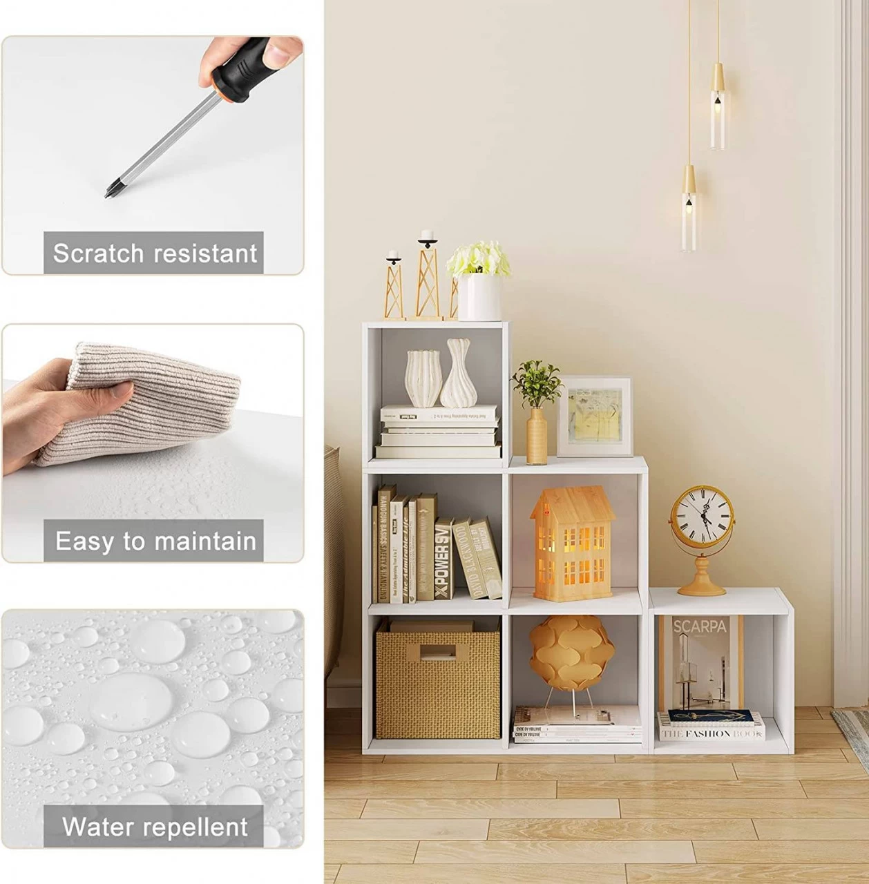 Ausreichend Stauraum: 6 offene Würfel bieten Platz für Bücher, Topfpflanzen, Fotos usw. Jedes Fach hat eine Rückplatte, damit die Gegenstände nicht herausfallen können.