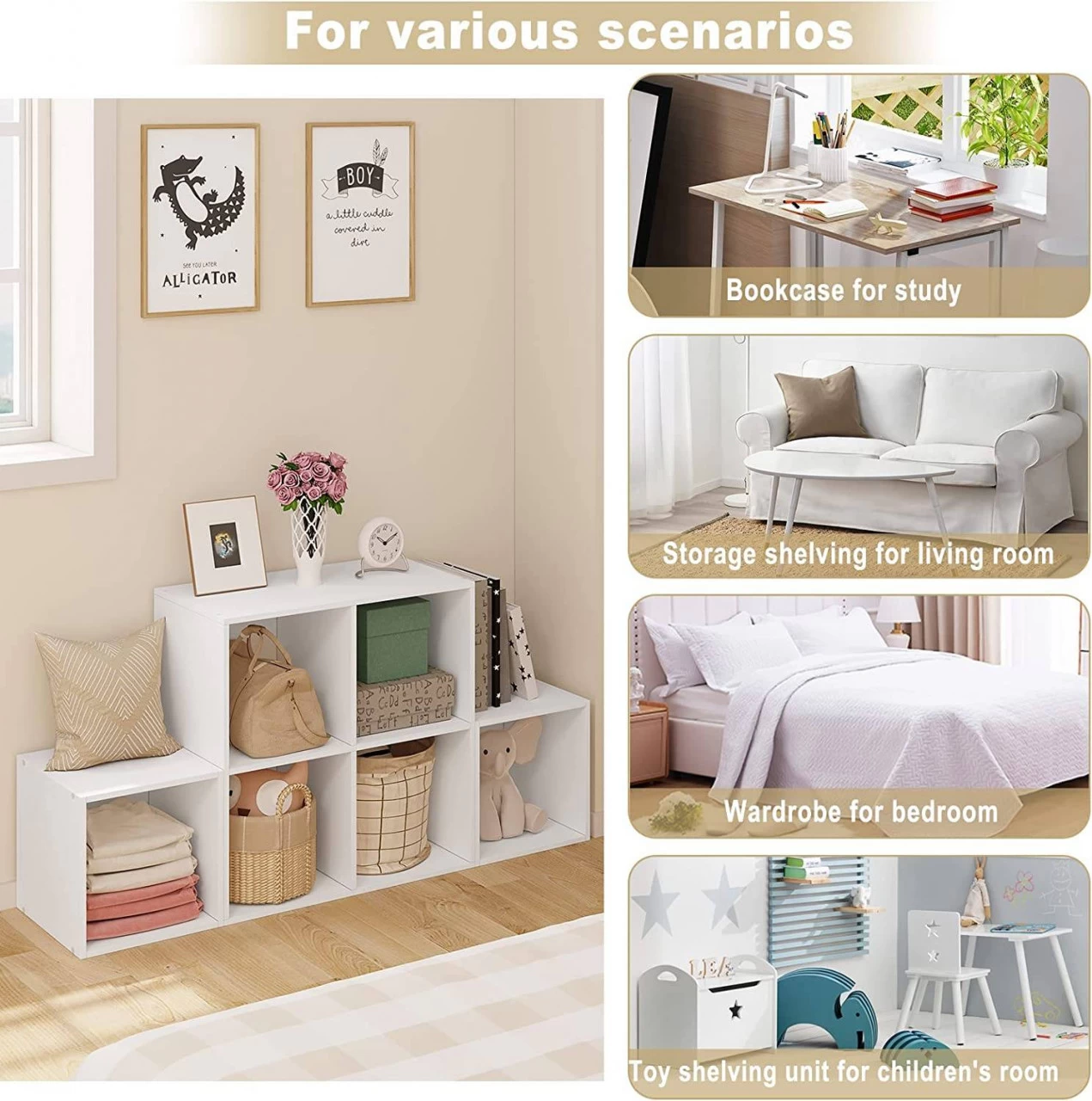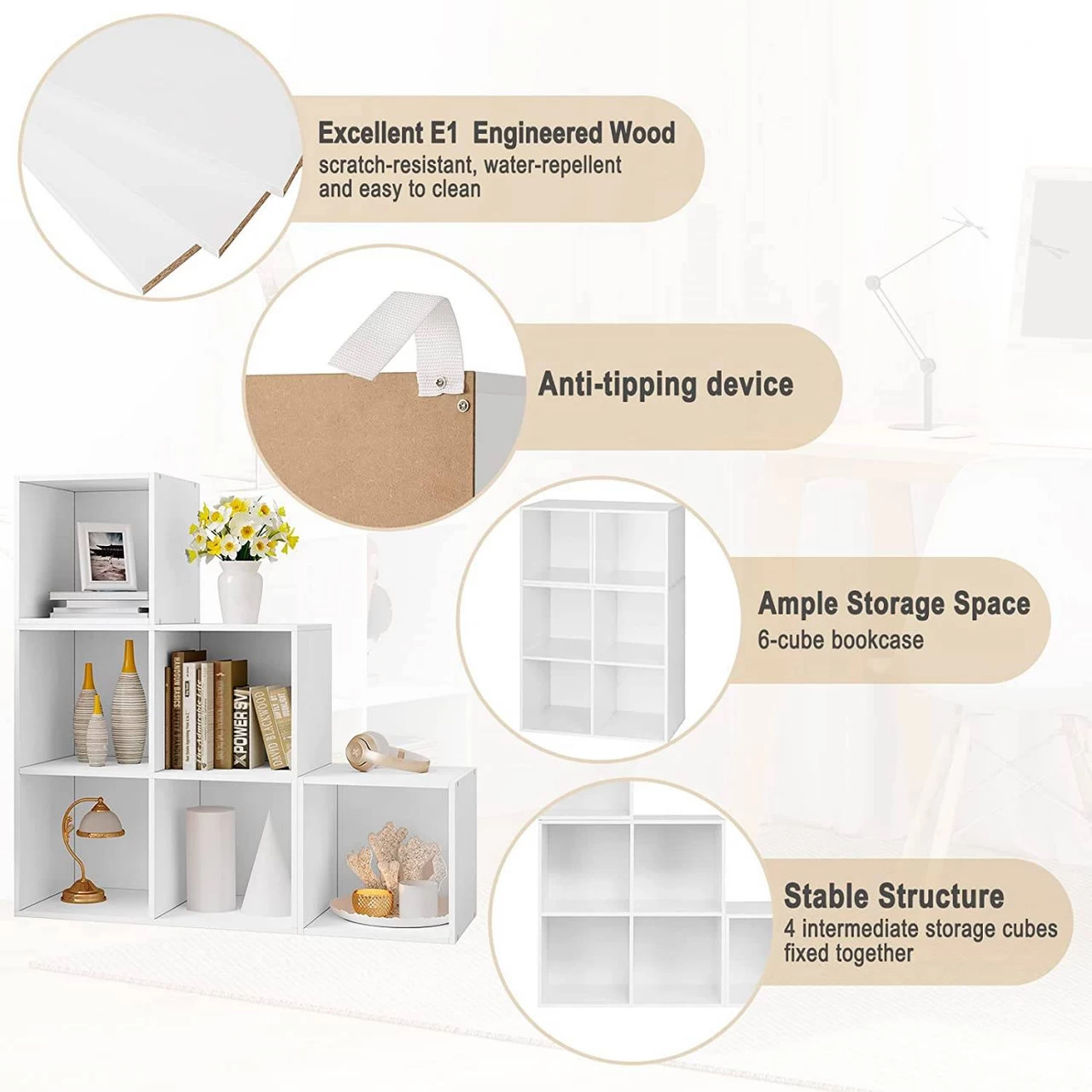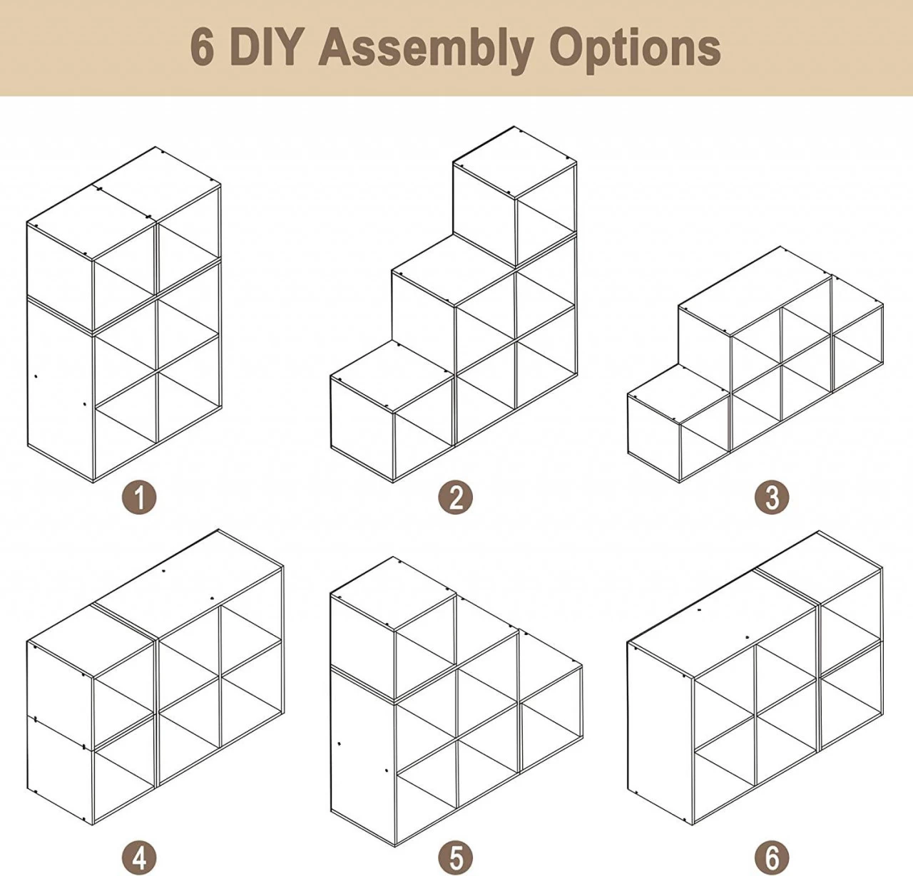 - FLEXIBLER UND GERÄUMIGER STAURAUM: Mit 6 offenen Fächern bietet Ihnen der Bücherschrank viel Stauraum. Mit 2 beweglichen Würfeln können Sie den Schrank auch treppenförmig oder rechteckig anordnen.