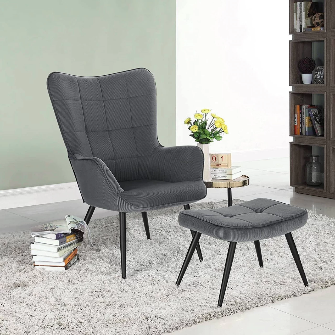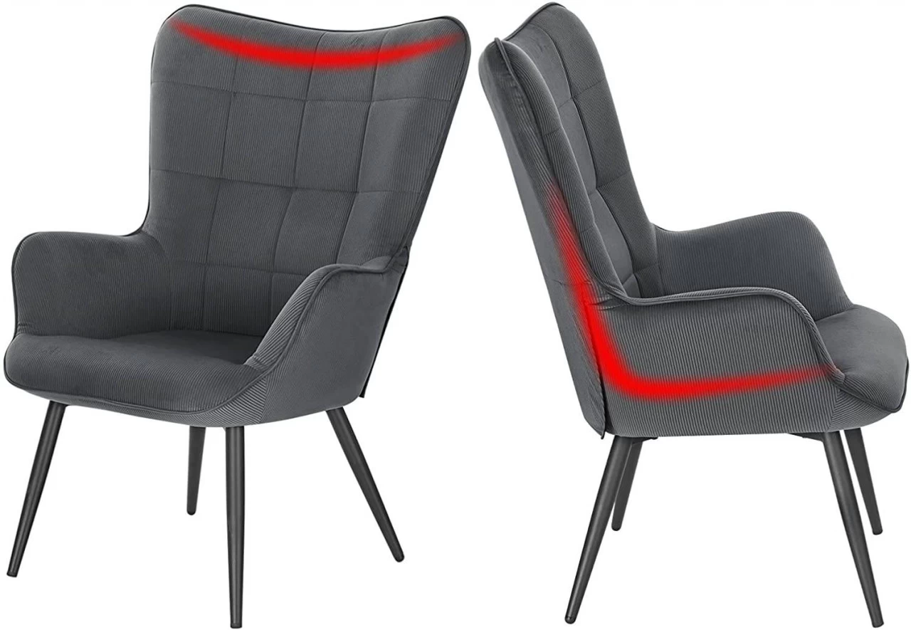 - Stilvoller moderner Ohrensessel für den Wohnbereich: Der klassisch dunkelgraue Cordbezug, die karierten Ziernähte und die schwarzen kegelförmigen Beine unterstreichen das schlichte Design und den modernen Stil. So lässt er sich leicht mit allen vorhandenen Einrichtungsgegenständen harmonisieren und setzt gleichzeitig dekorative Akzente im Raum