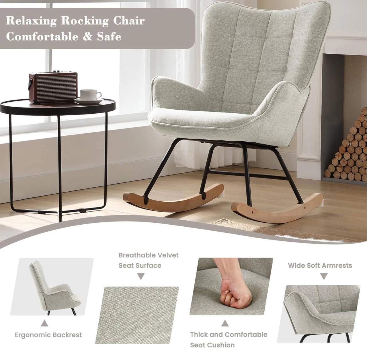 - HOHER KOMFORT: Der Schaukelstuhl für Wohnzimmer ist mit atmungsaktivem bedrucktem Flanell bezogen und mit hochdichtem Schaumstoff gepolstert. Seine Basis wie Kufen ermöglicht es Ihnen, das Schaukeln beim Lesen, Fernsehen oder Musikhören zu genießen