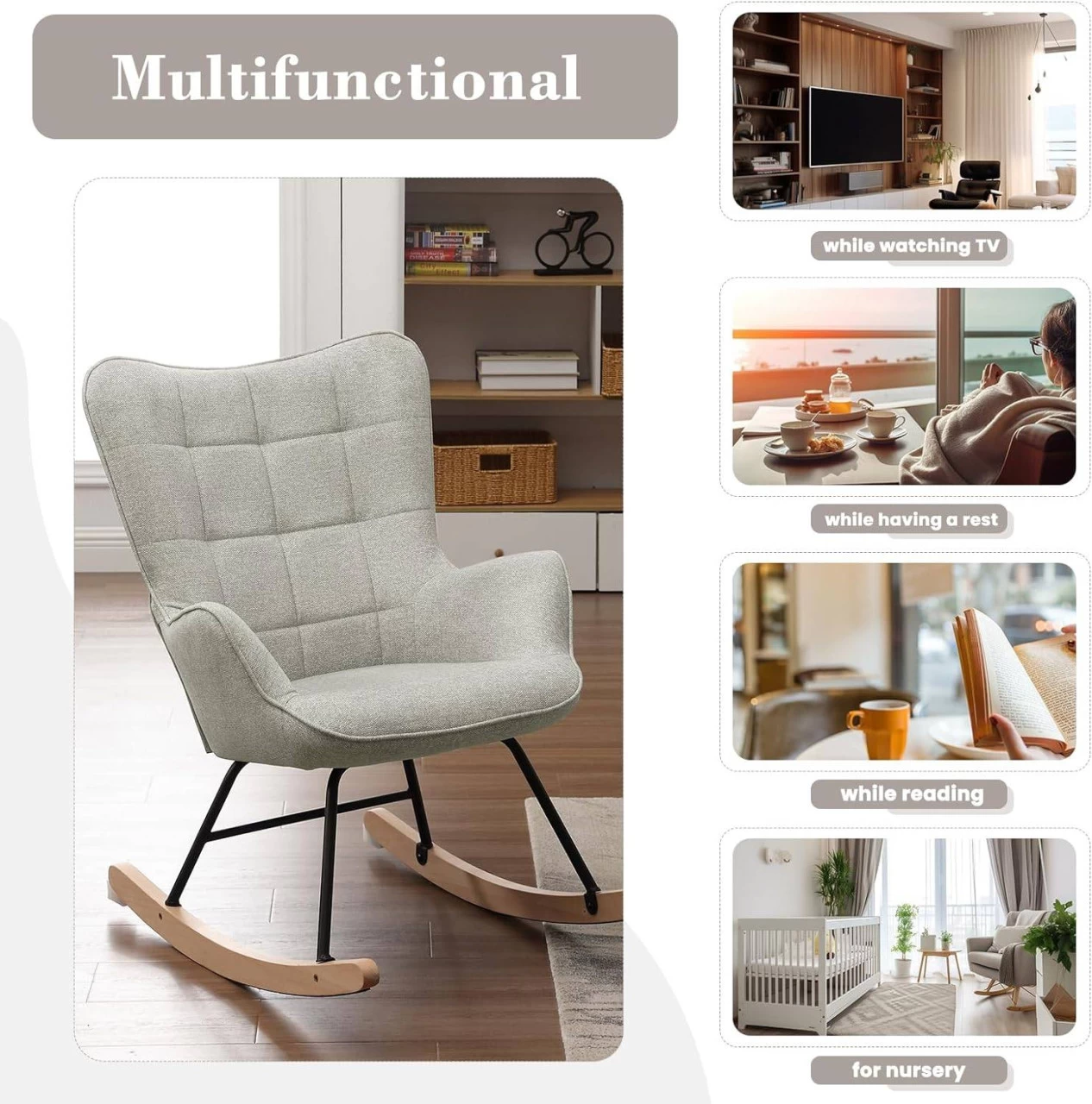 - VIELSEITIG: Mit seinem eleganten Look kann sich der skandinavische Schaukelstuhl in Ihren Wohnbereich einfügt und ihn dekoriert: als Relaxsessel, Lesesessel, Liegesessel, Fernsehsessel im Wohnzimmer, Schlafzimmer, Büro, Terrasse, Balkon, Garten, Hof…