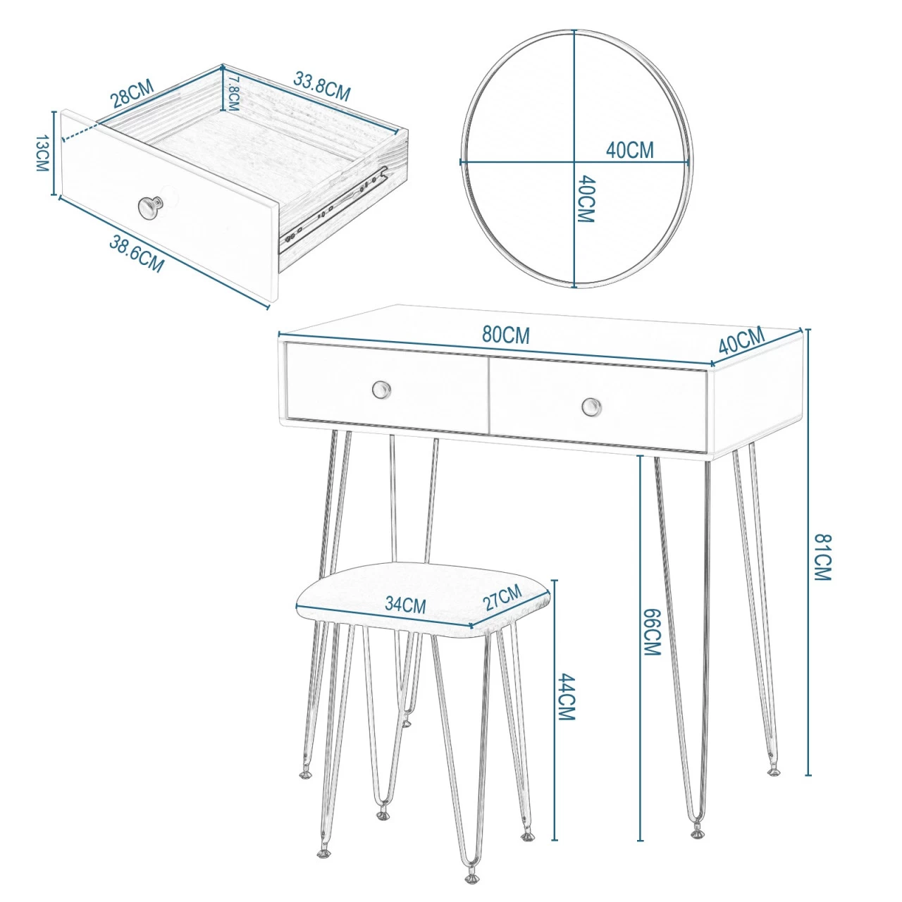 - Design für Sie: Durch Lieferung werden Sie einen Tisch, einen Spiegel, einen Hocker und eine Aufbauanleitung bekommen. Das Schmink-Set ist kinderleicht zu montieren, was weniger als 20 Minuten kostet. Der Zweck aller unserer Designs für den Schminktisch ist es, Ihnen die beste Erfahrung zu bieten. Vertrauen Sie uns also und genießen Sie die Verwendung dieses Produkts.
