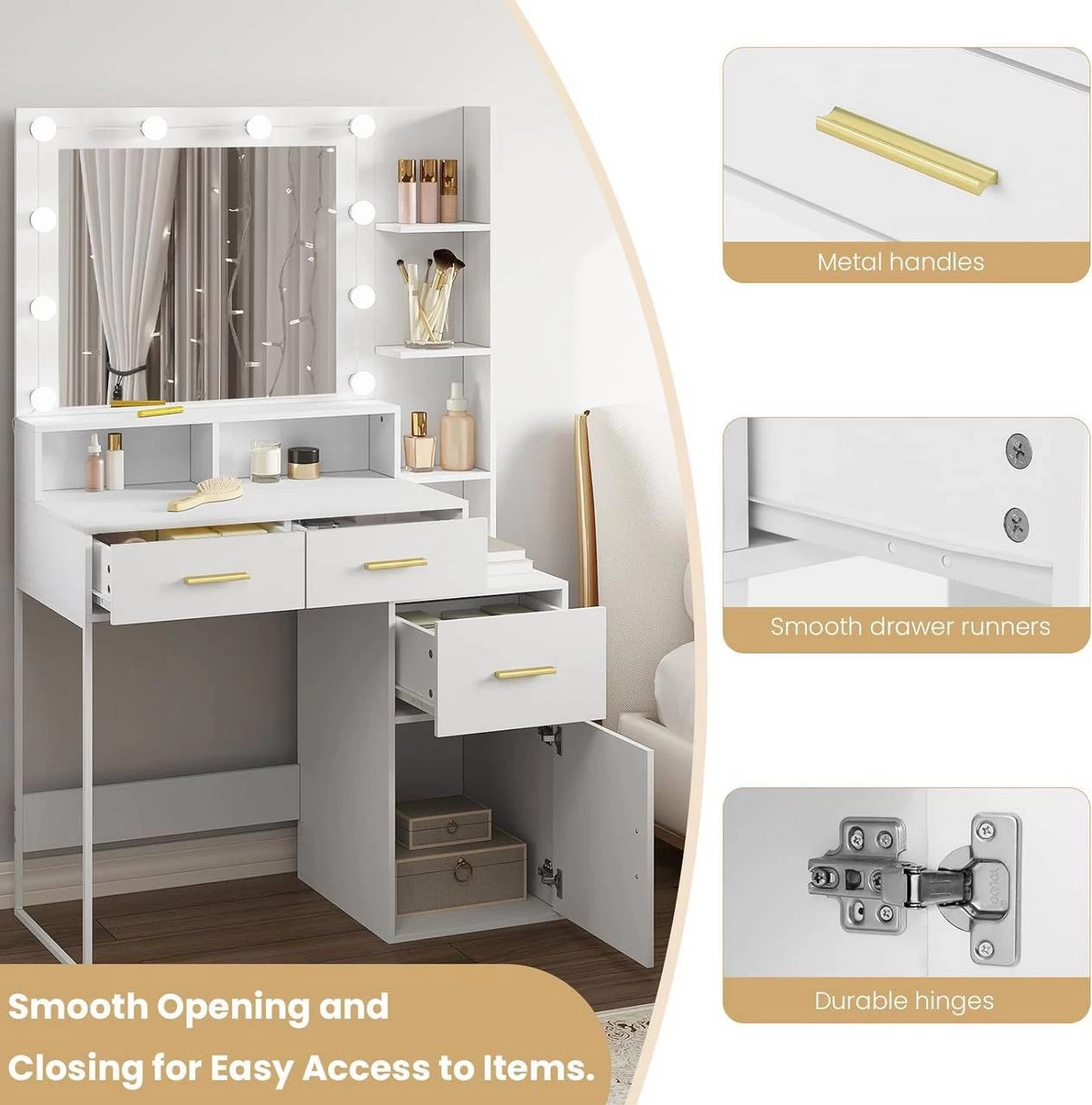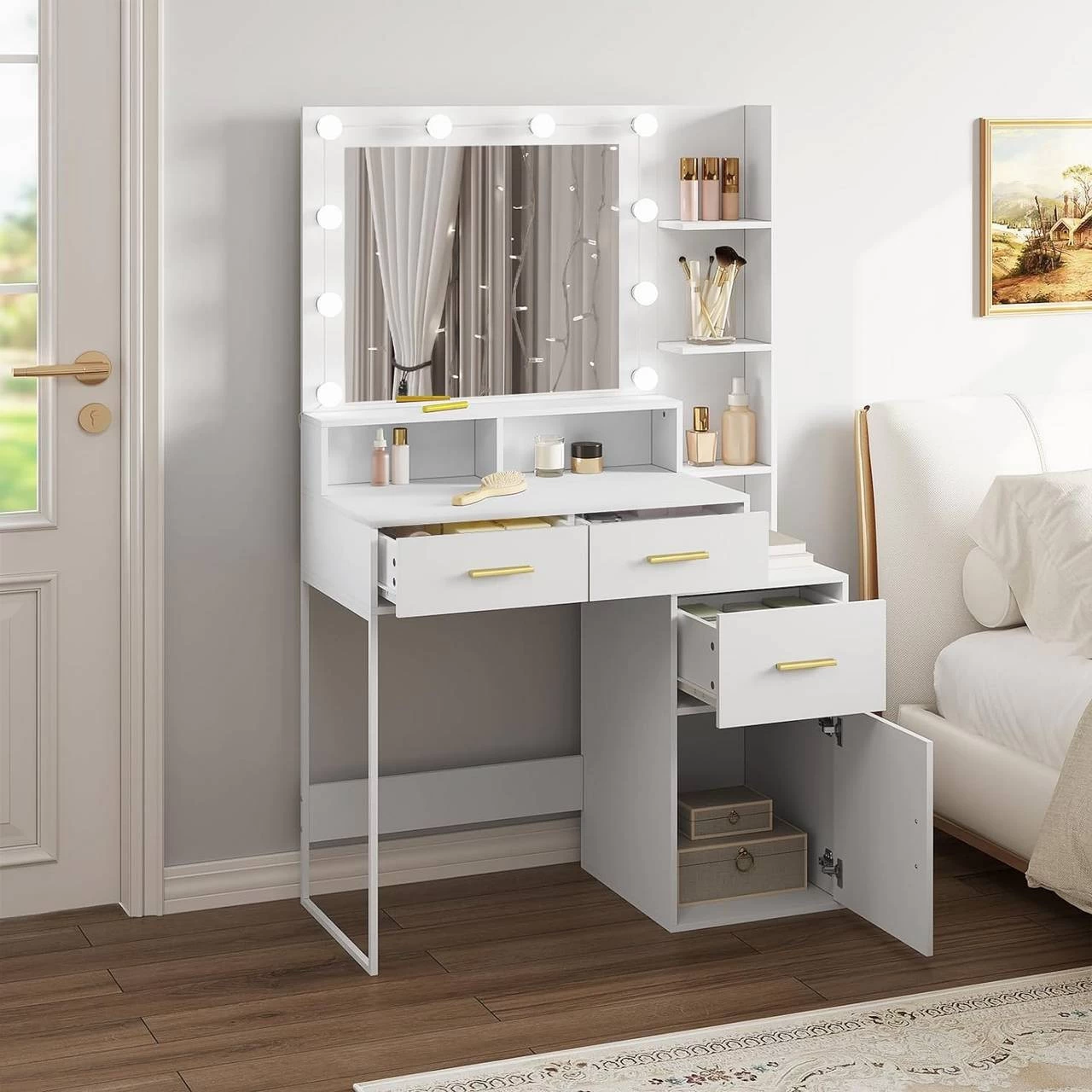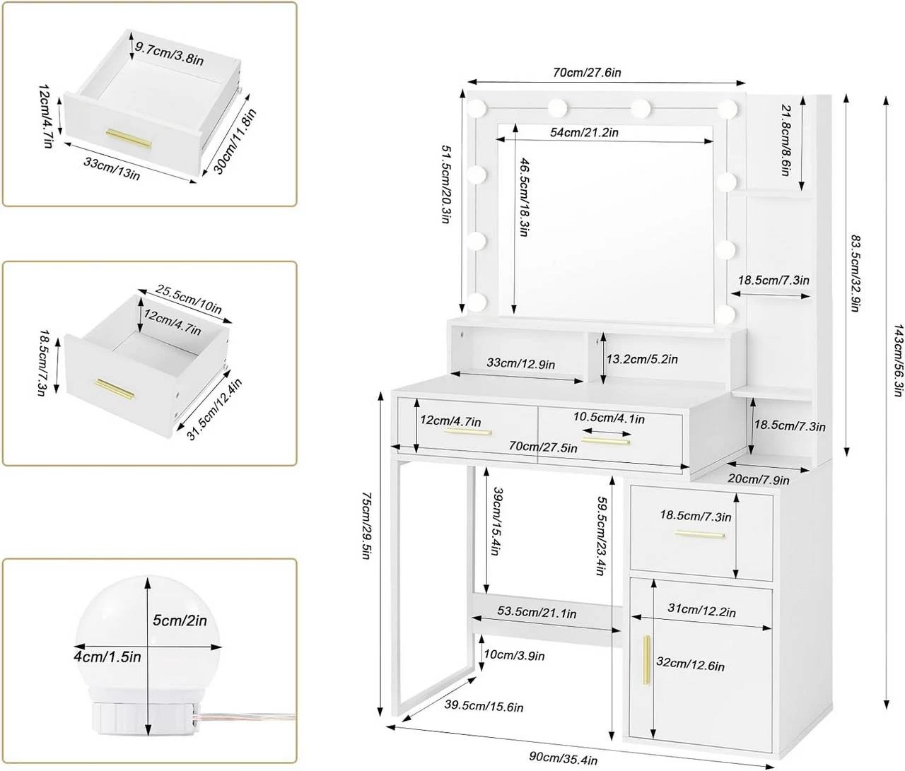 - STABIL & LANGLEBIG: Der Schminktisch mit Beleuchtung besteht aus Premium-Holzwerkstoff, Metallbeinen und einem verstärkten Balken im Unten, ist stabil, haltbar und leicht zu reinigen, sodass Sie lange Freude an ihm haben werden. Tragfähigkeit: 50 kg.