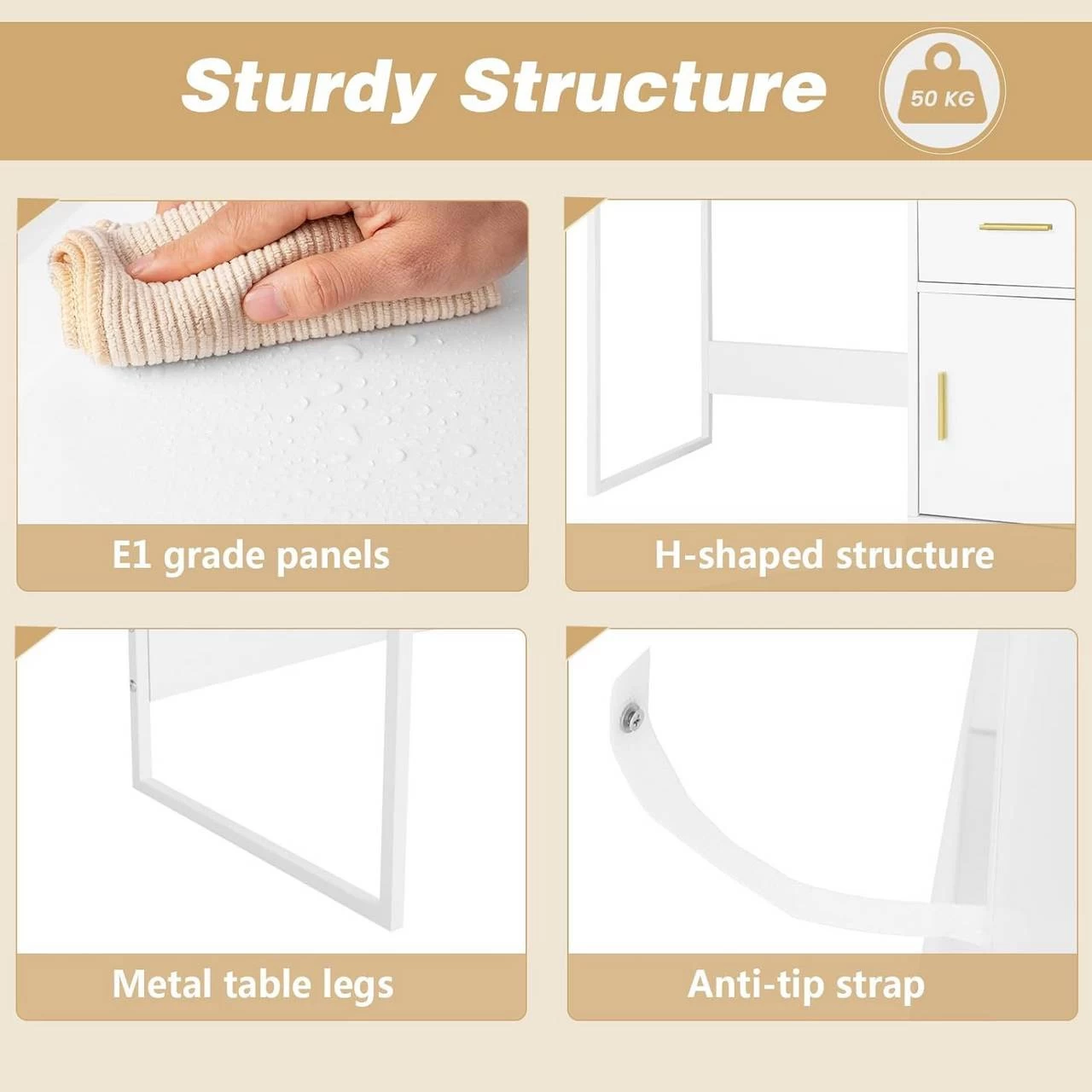 Stabile Konstruktion: Der Metallrahmen und der untere Balken machen den Make-Up-Tisch robust und stabil. Für Sicherheit bitte ihn mit dem Kippschutz an der Wand befestigen.